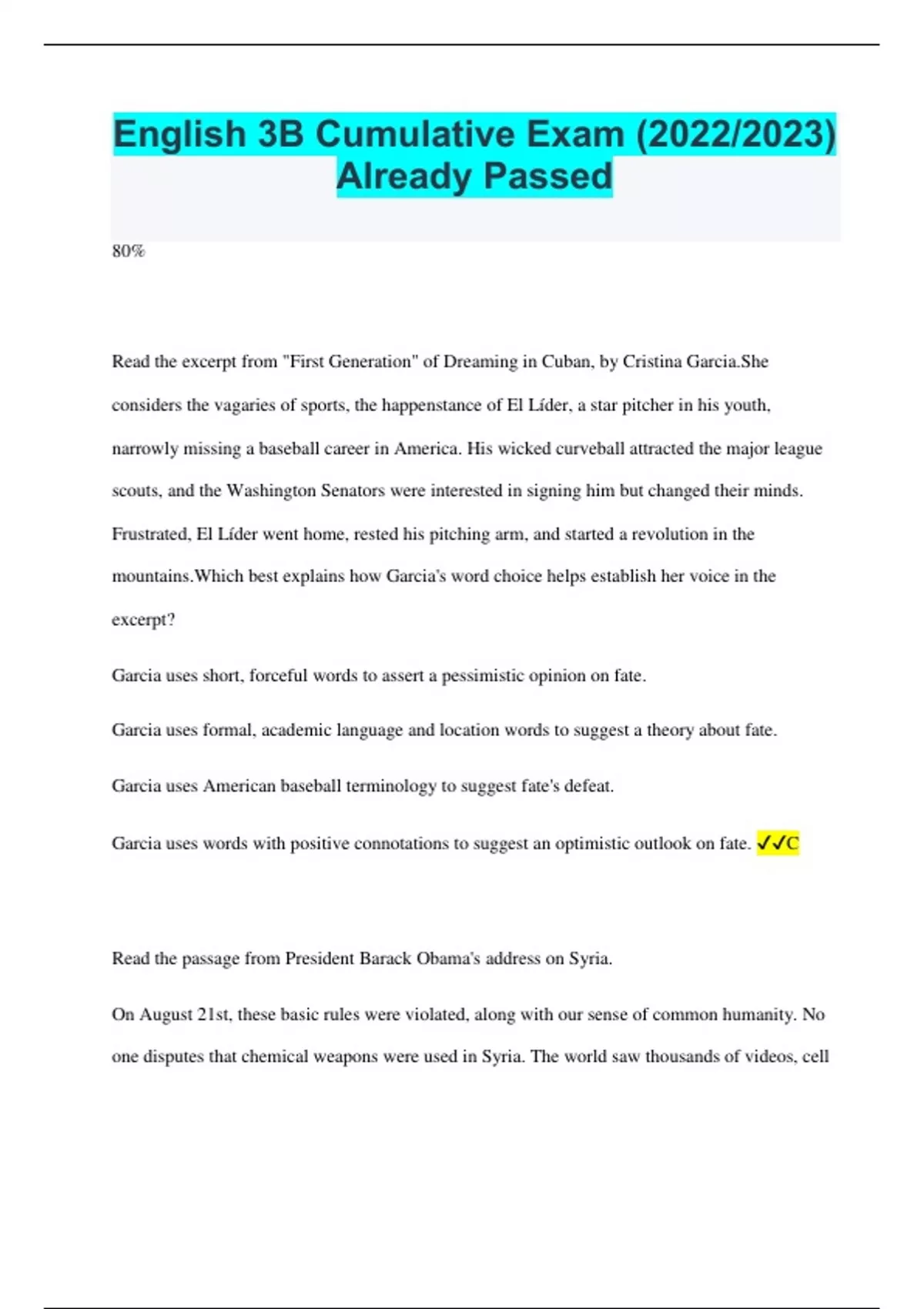 Read the passage from President Barack Obama's address on Syria.