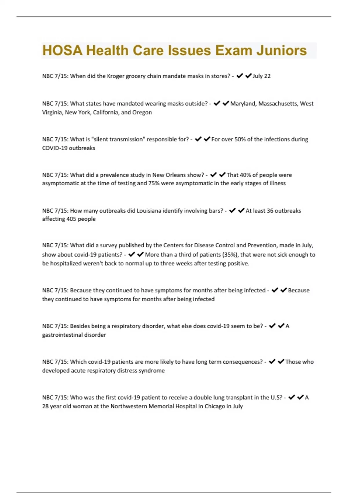 HOSA Health Care Issues Exam Juniors | 260 Questions and Answers(A+ Solution guide)