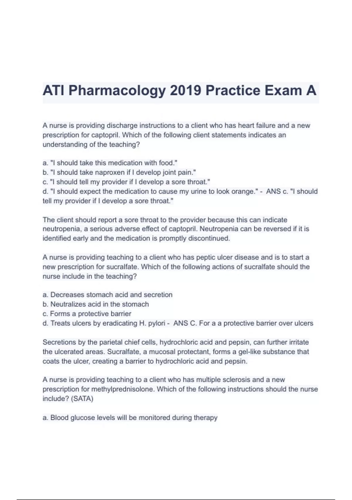 ATI Pharmacology 2019 Practice Exam A