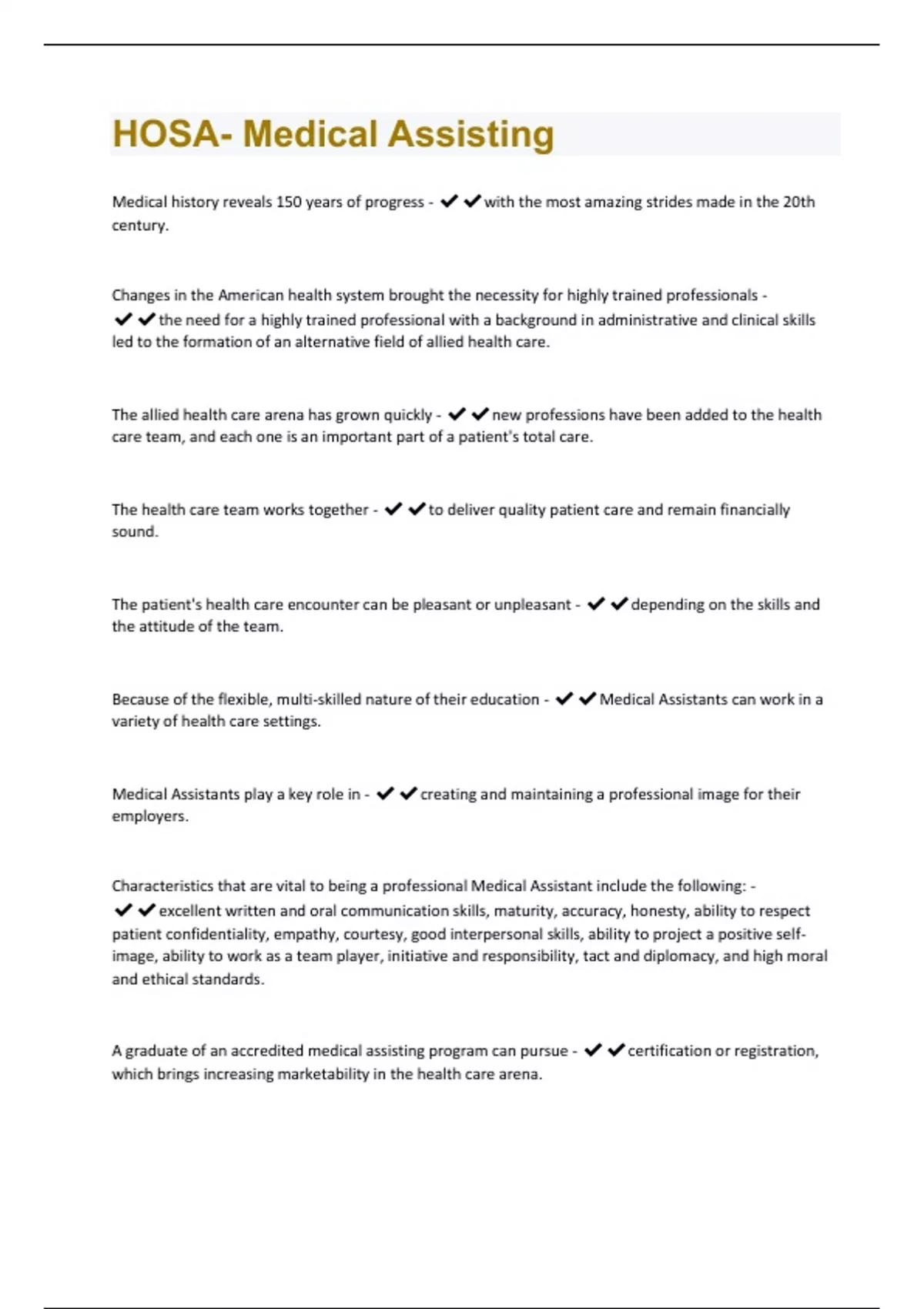 - HOSA- Medical Assisting