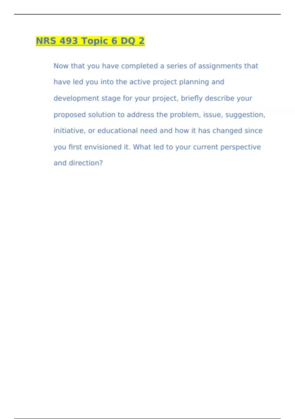 NUR 493 TOPIC 6 DQ 2 CORRECTLY ANSWERED /LATEST UPDATE VERSION/ GRADED A+