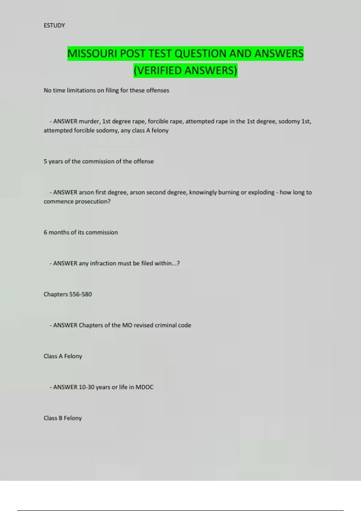 missouri post test question and answers verified