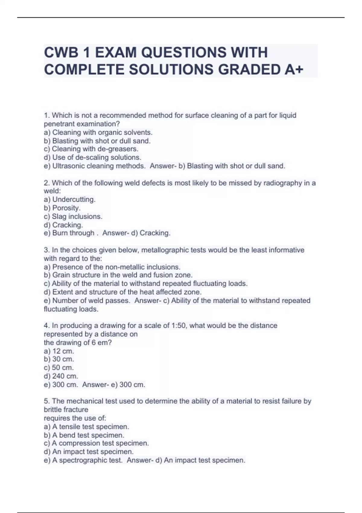 CWB 1 EXAM QUESTIONS WITH COMPLETE SOLUTIONS GRADED A+