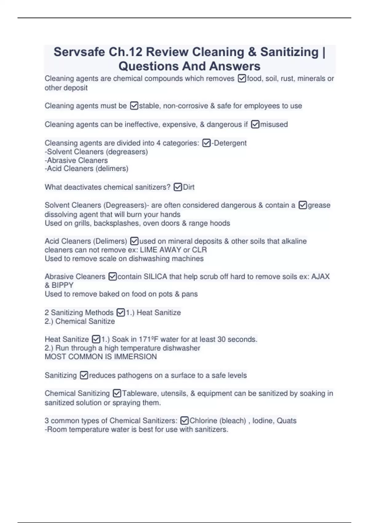 Servsafe Ch.12 Review Cleaning & Sanitizing | Questions And Answers Servsafe Ch.12 Review Cleaning & Sanitizing | Questions And Answers