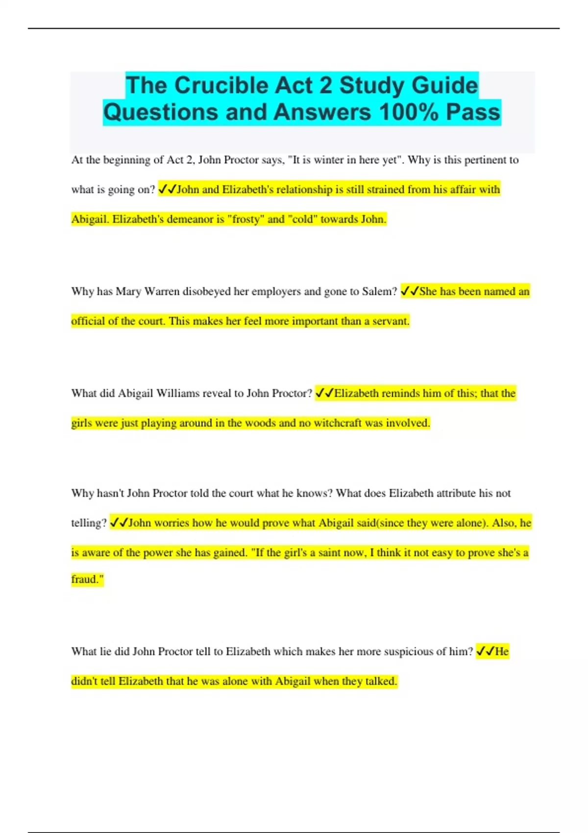 The Crucible Act 2 Study Guide Questions and Answers 100% Pass