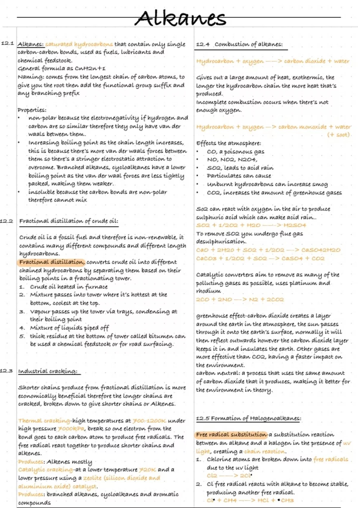12.1 Alkanes: saturated hydrocarbons that contain only single 12.4 Combustion of alkanes:
