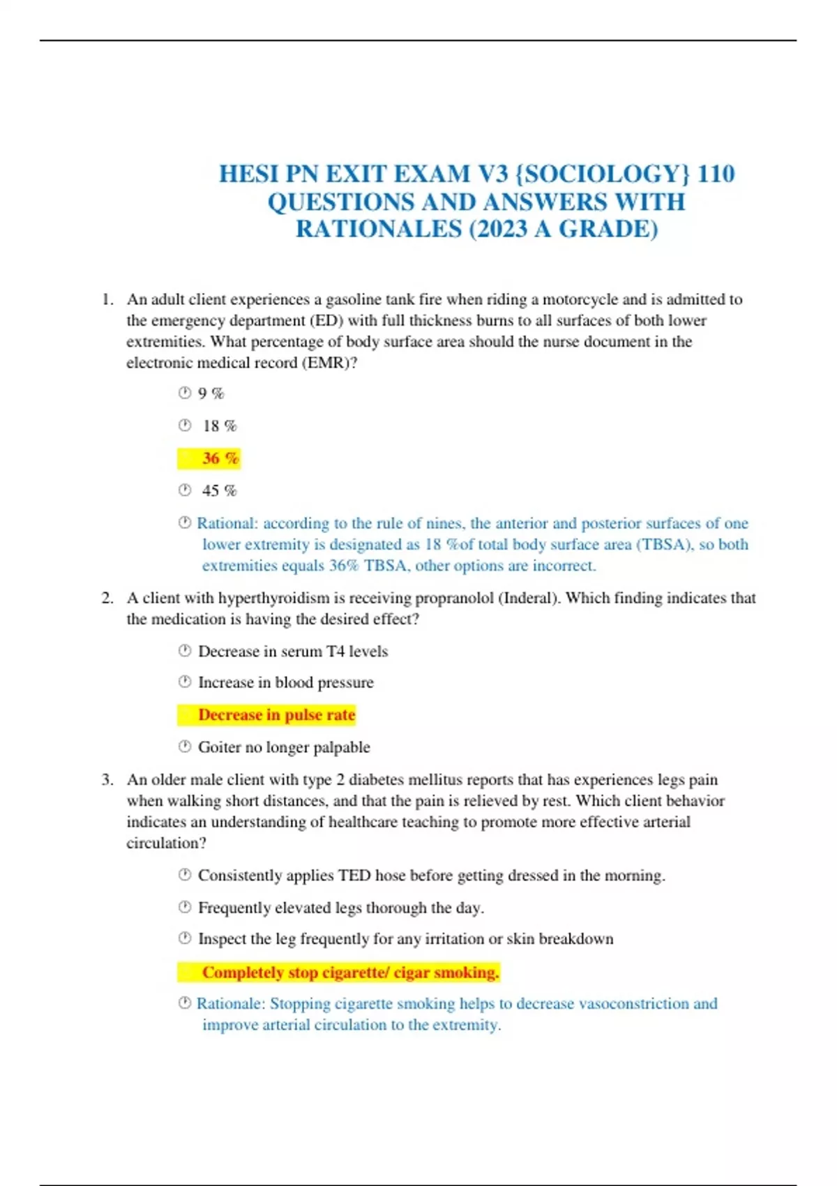 HESI PN EXIT EXAM V3 {SOCIOLOGY} 110 QUESTIONS AND ANSWERS WITH RATIONALES