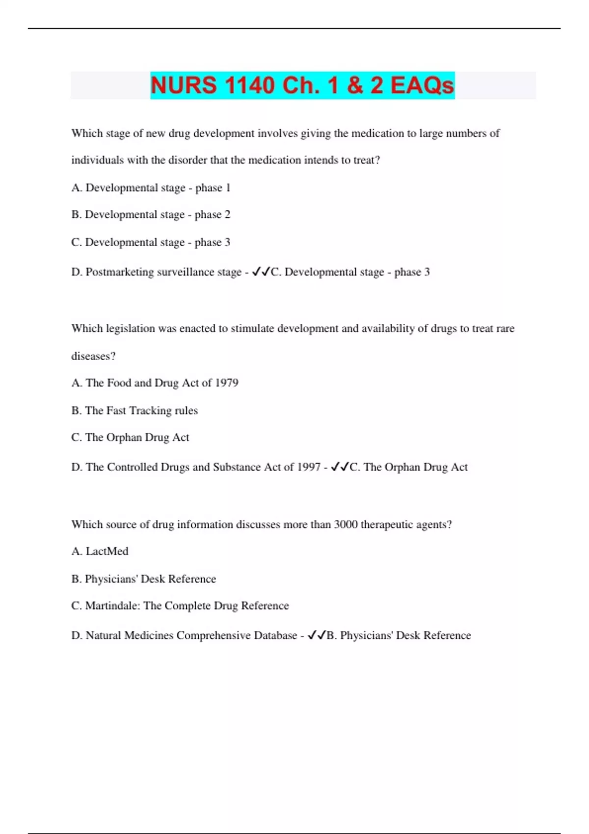 - NURS 1140 Ch. 1 & 2 EAQs