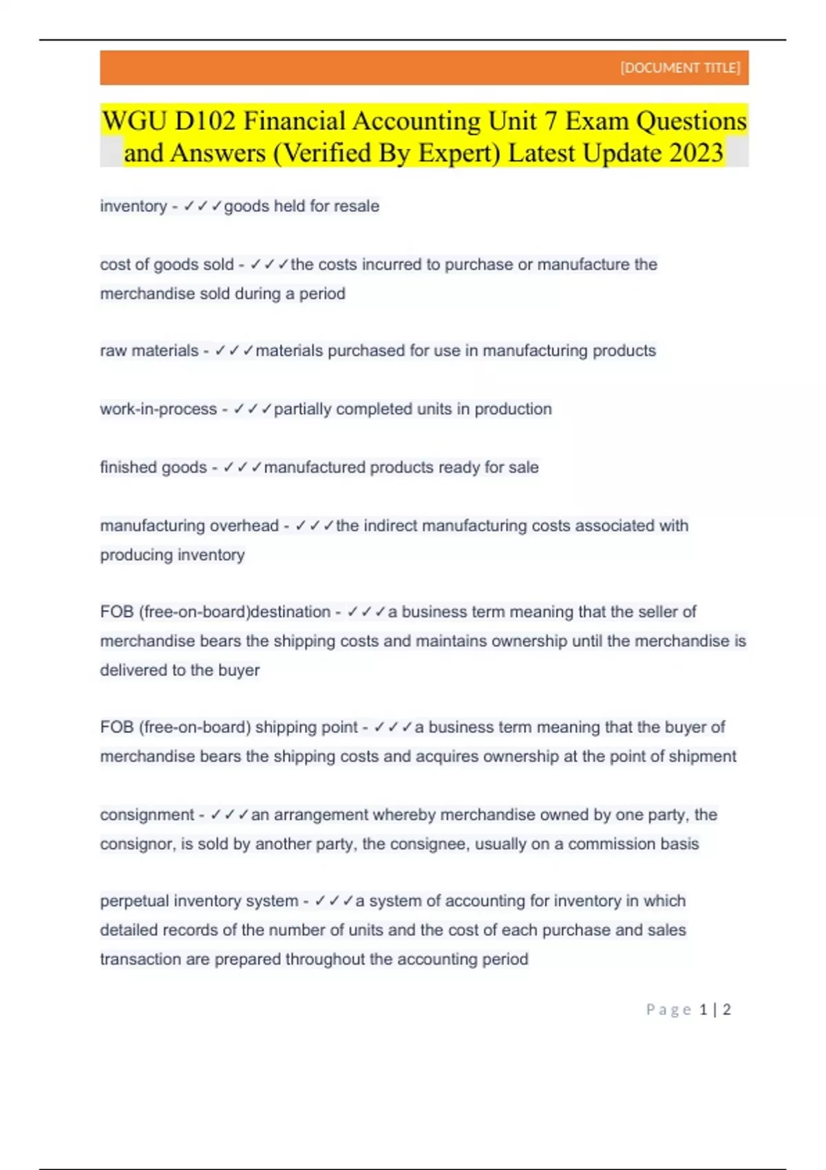 WGU D102 Financial Accounting Unit 7 Exam Questions and Answers (Verified By Expert) Latest Update WGU D102 Financial Accounting Unit 7 Exam Questions and Answers (Verified By Expert) Latest Update