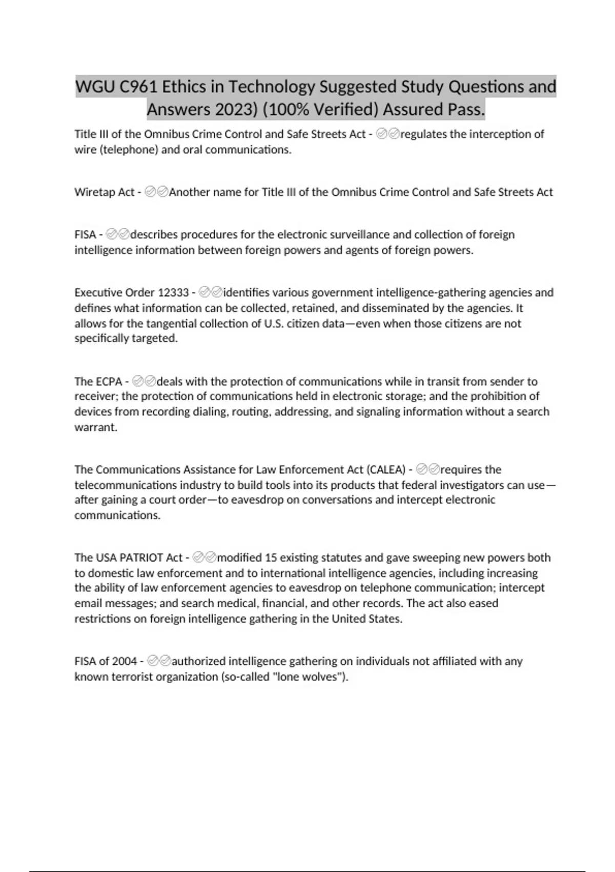 WGU C961 Ethics in Technology Suggested Study Questions and Answers 2023) (100% Verified) Assured Pass..docx