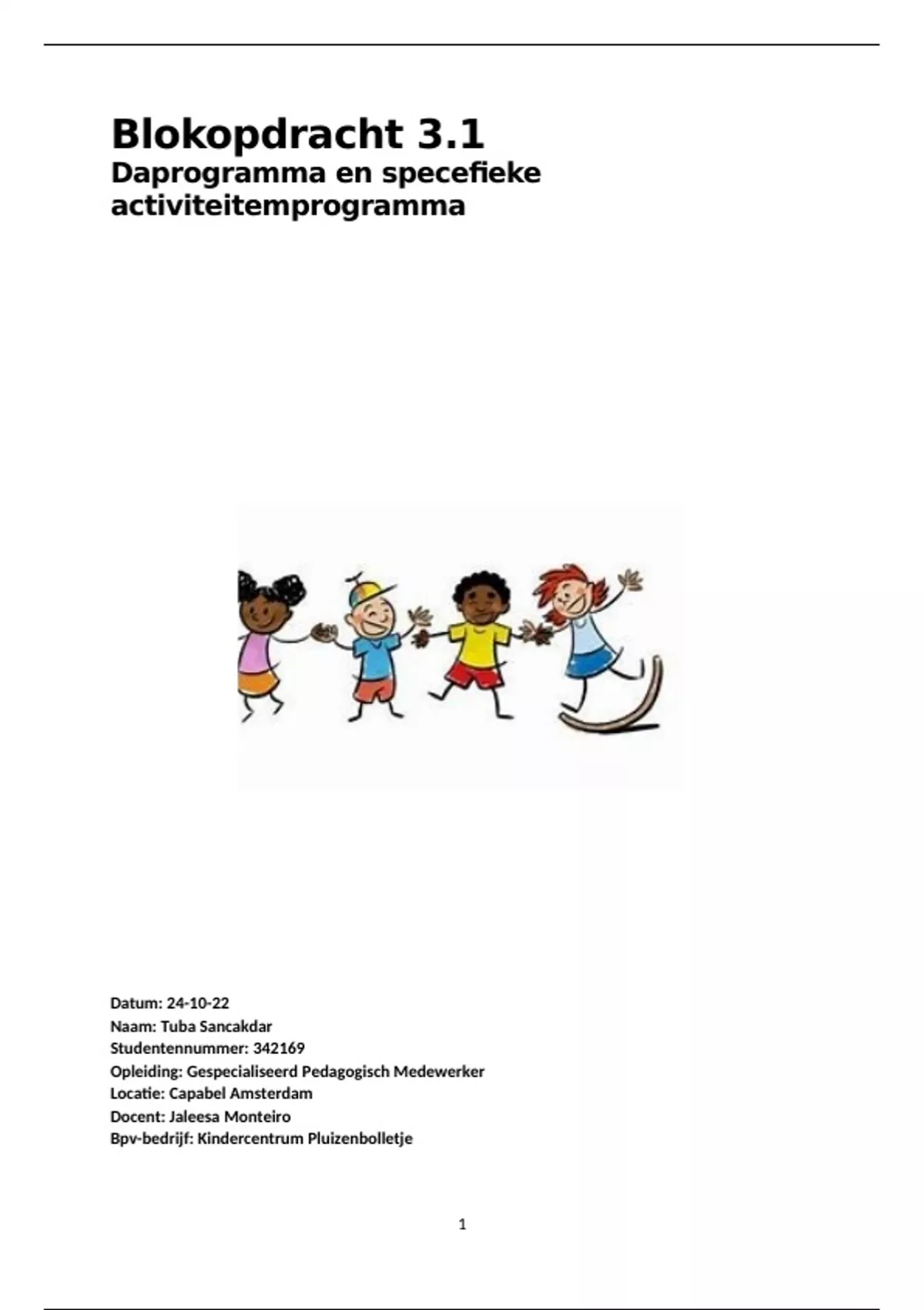 Welkom bij Blokopdracht 3.1Dagprogramma en specifiek activiteitenprogramma. De opdracht is volledig uitgewerkt volgens de criteria en in 1x goedgekeurd.