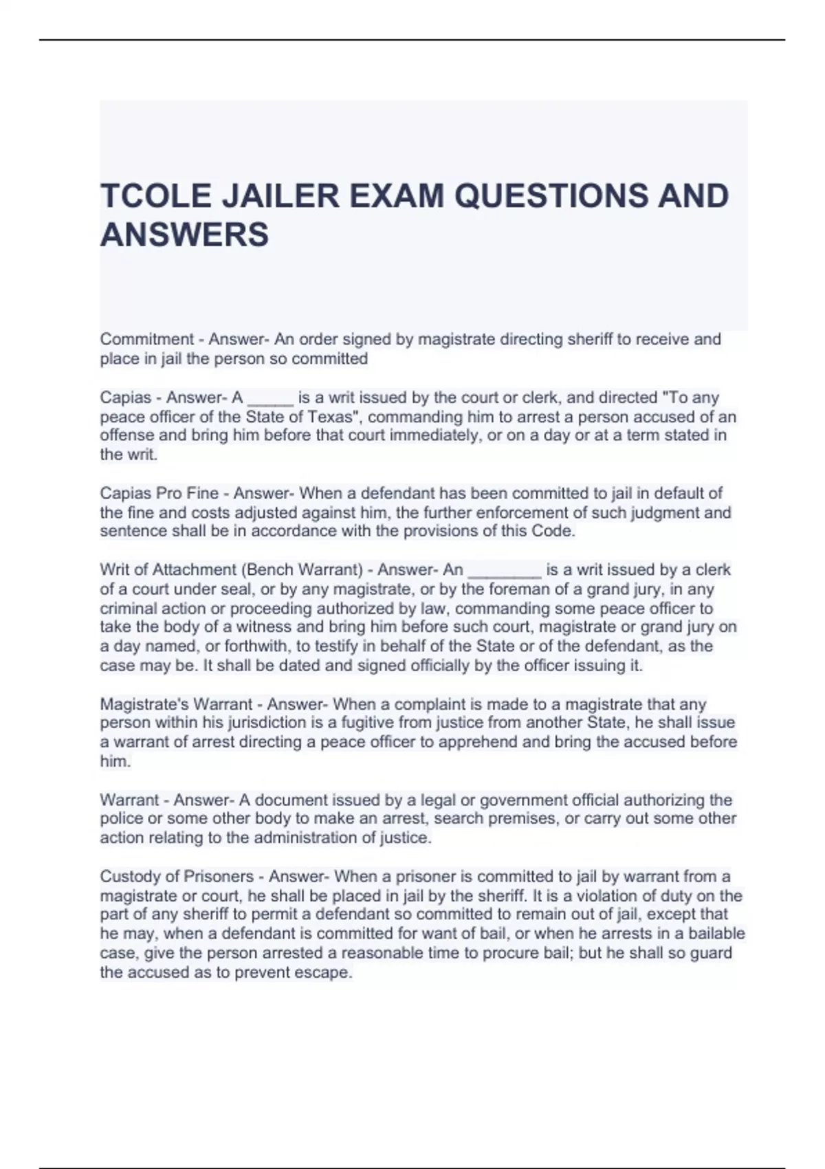 TCOLE JAILER EXAM QUESTIONS AND ANSWERS 2023