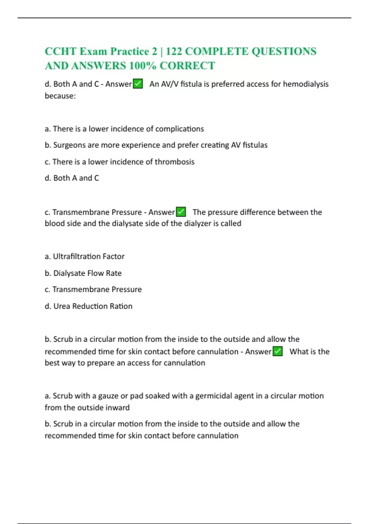 CCHT Exam Practice 2 | 122 COMPLETE QUESTIONS AND ANSWERS 100% CORRECT