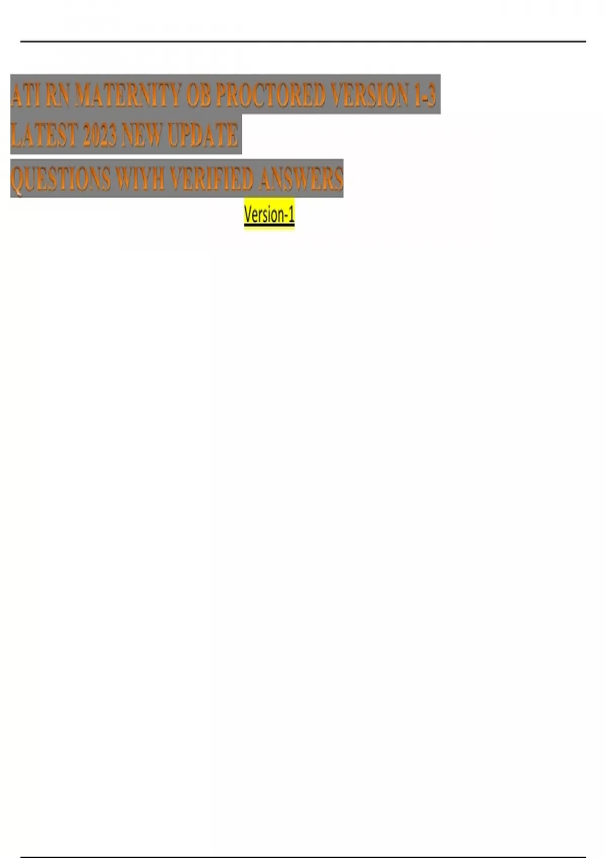 ATI RN MATERNITY OB PROCTORED VERSION 1-3 LATEST 2023 NEW UPDATE QUESTIONS WIYH VERIFIED ANSWERS