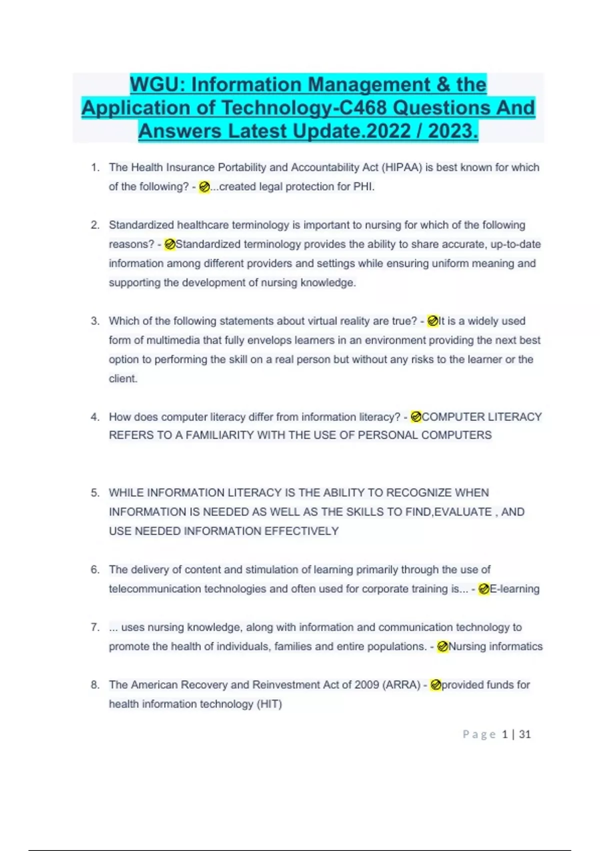 WGU Information Management & the Application of Technology-C468 Questions And Answers Latest Update...docx