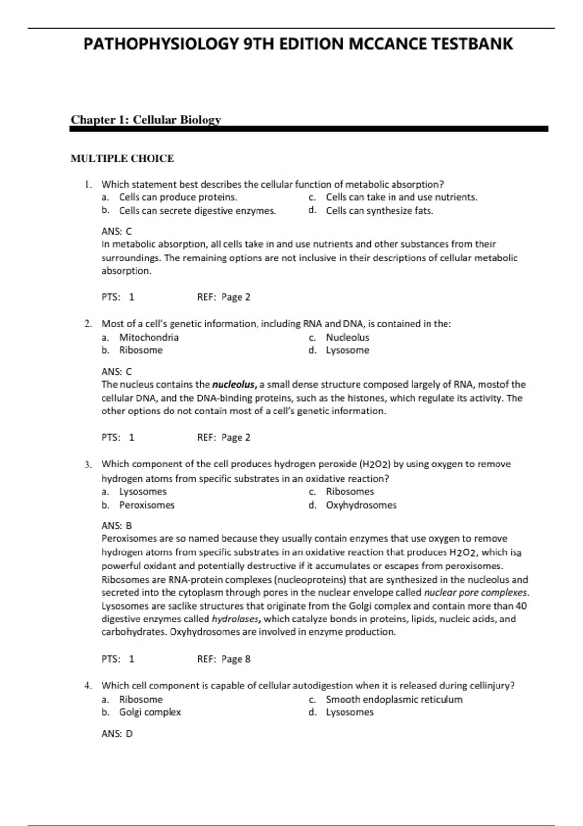 PATHOPHYSIOLOGY 9TH EDITION MCCANCE TESTBANK