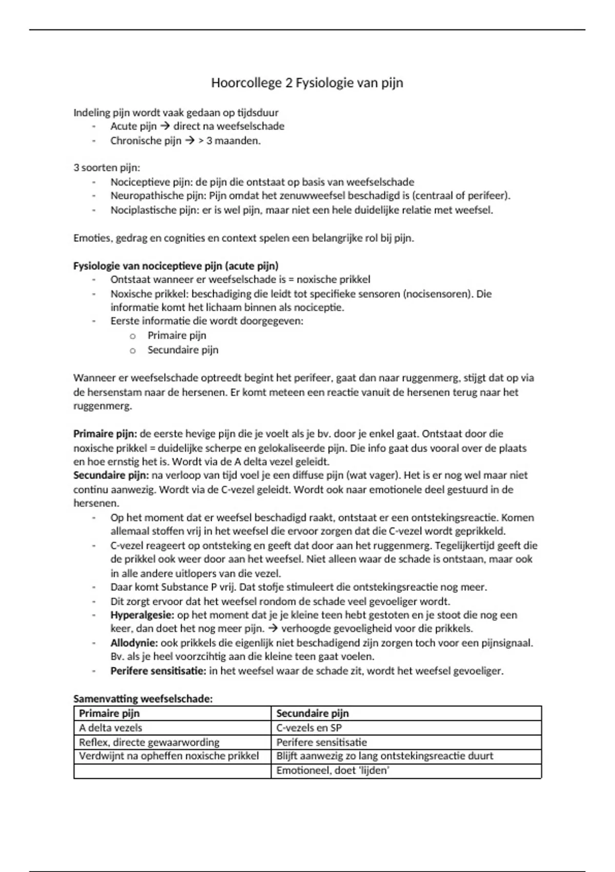 Hoorcollege 2 Fysiologie van pijn