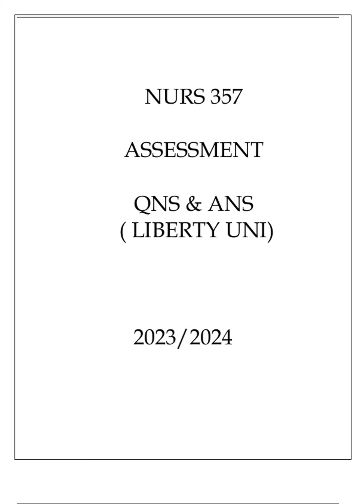NURS 357 ASSESSMENT QNS & ANS ( LIBERTY UNI ) 2023.
