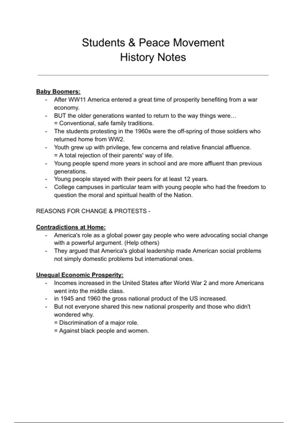 - The students protesting in the 1960s were the off-spring of those soldiers who