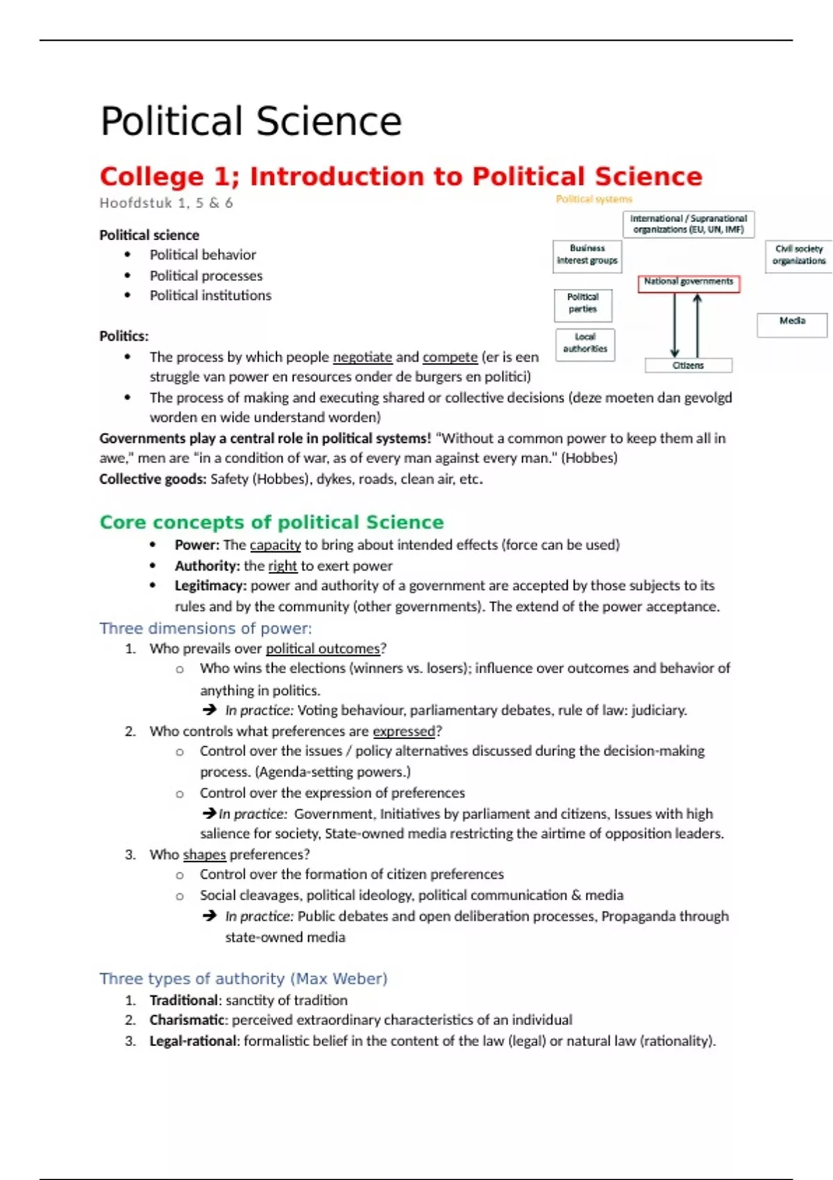College 1 aantekeningen Political Science (ESSB-SBC1070)