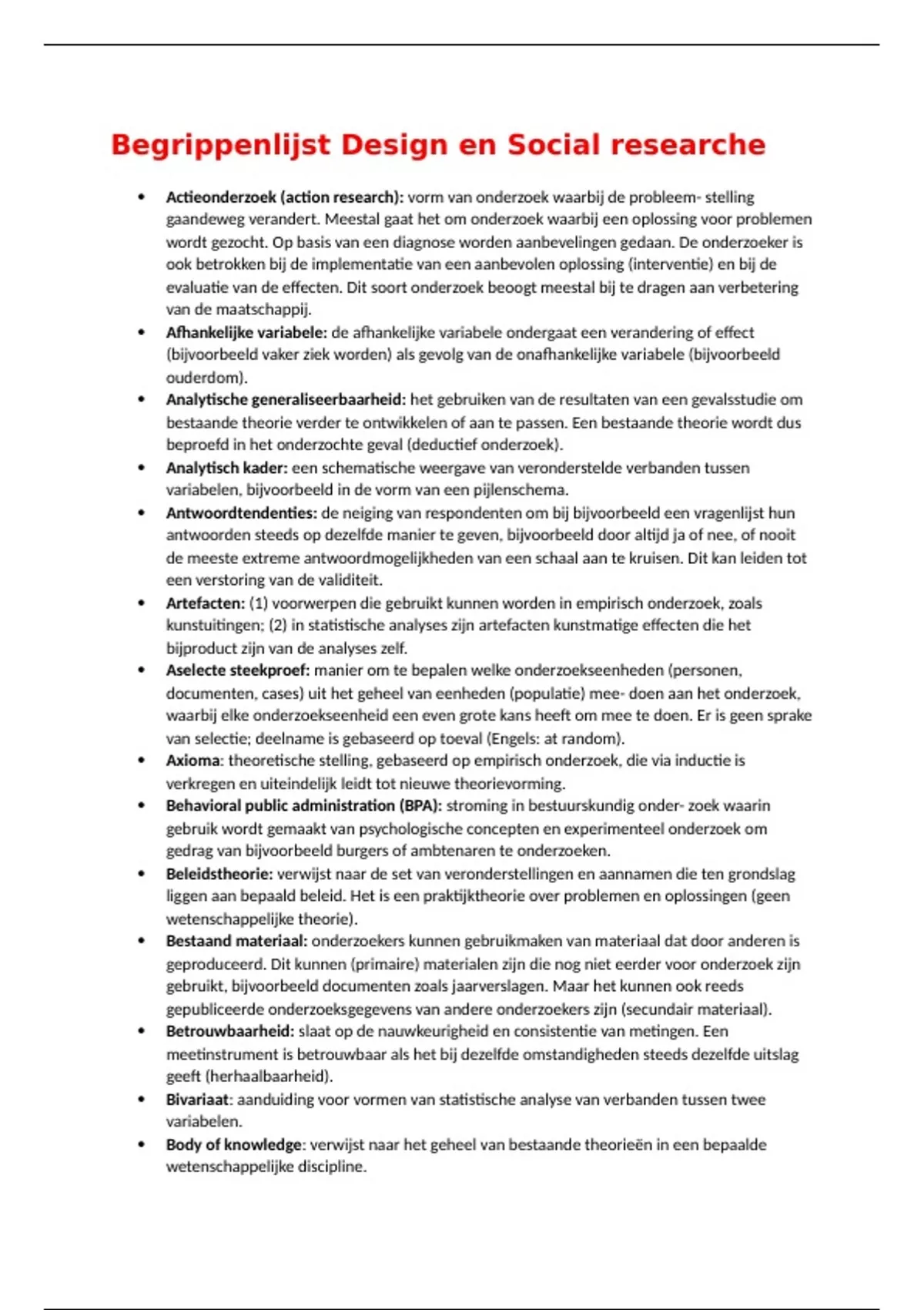 Dit is een begrippenlijst van alle begrippen die je nodig hebt voor Designing Social Research. Je kan ze in wrts zetten of andere begrippenoefensites maar ook gewoon op zichtzelf oefenen.