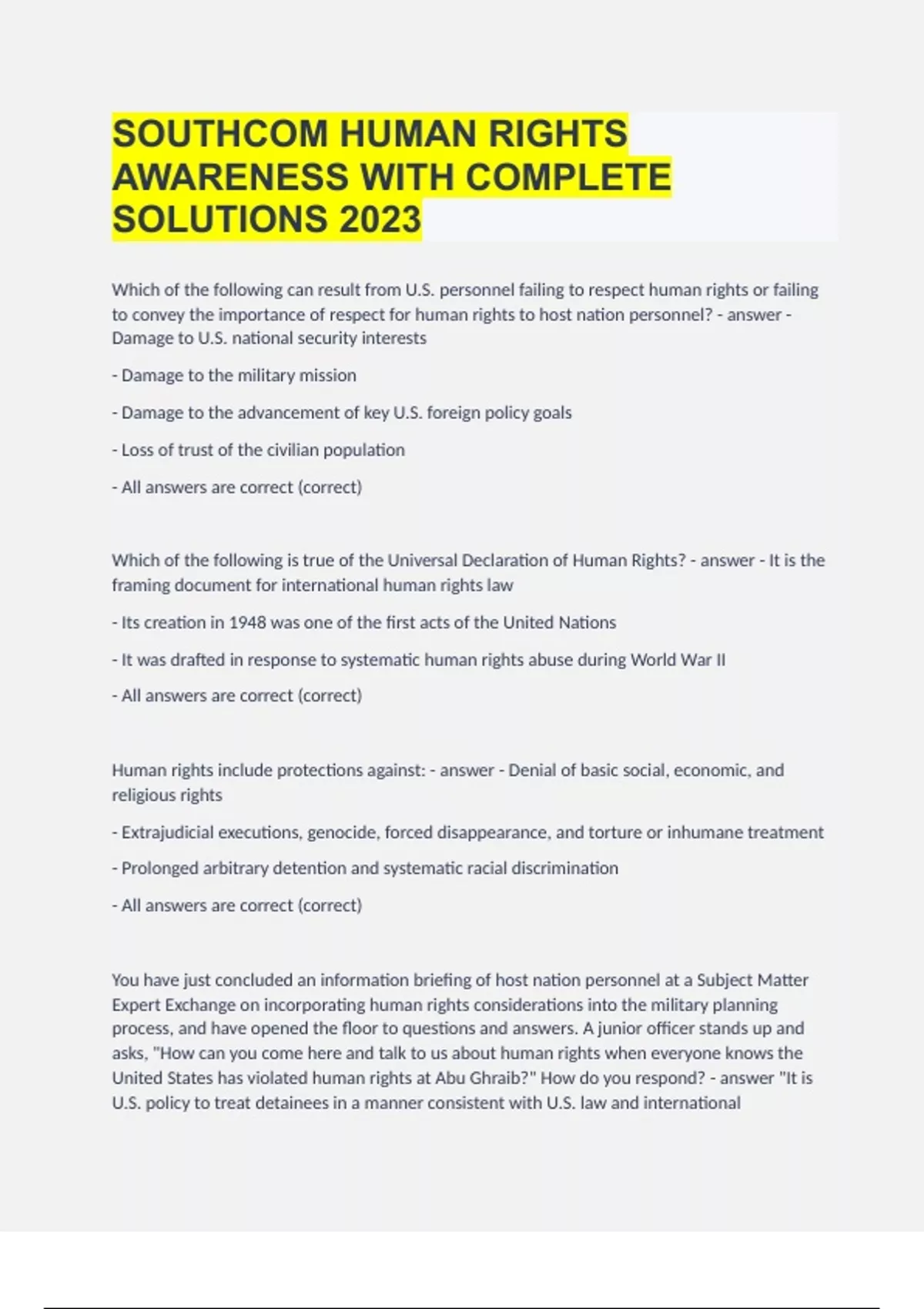 SOUTHCOM HUMAN RIGHTS AWARENESS WITH COMPLETE SOLUTIONS 2023