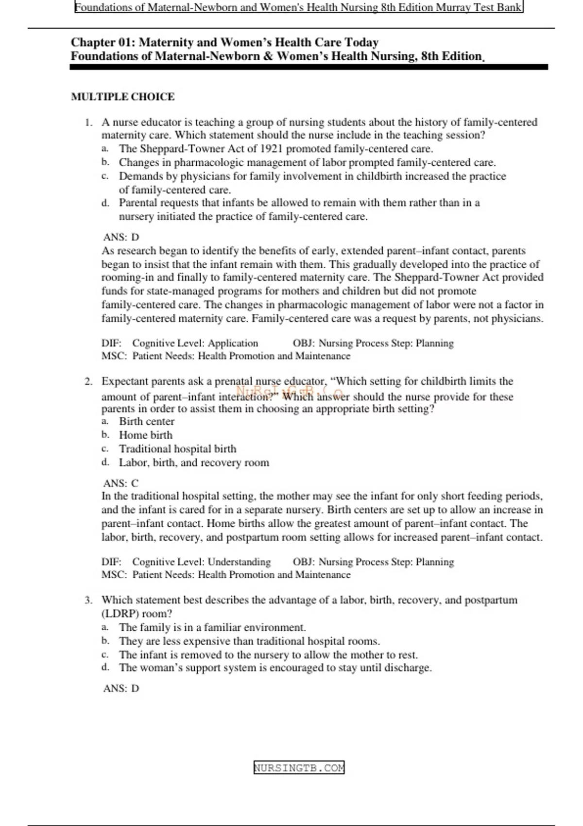 Test Bank - Foundations of Maternal-Newborn and Women’s Health Nursing, 8th Edition (Murray, 2024), Chapter 1-28 | All Chapters