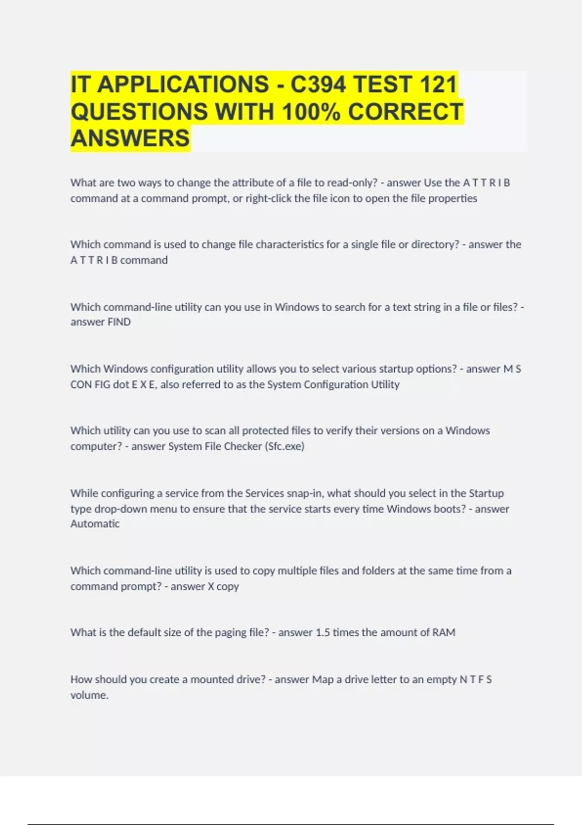 IT APPLICATIONS - C394 TEST |121 QUESTIONS WITH 100% CORRECT ANSWERS