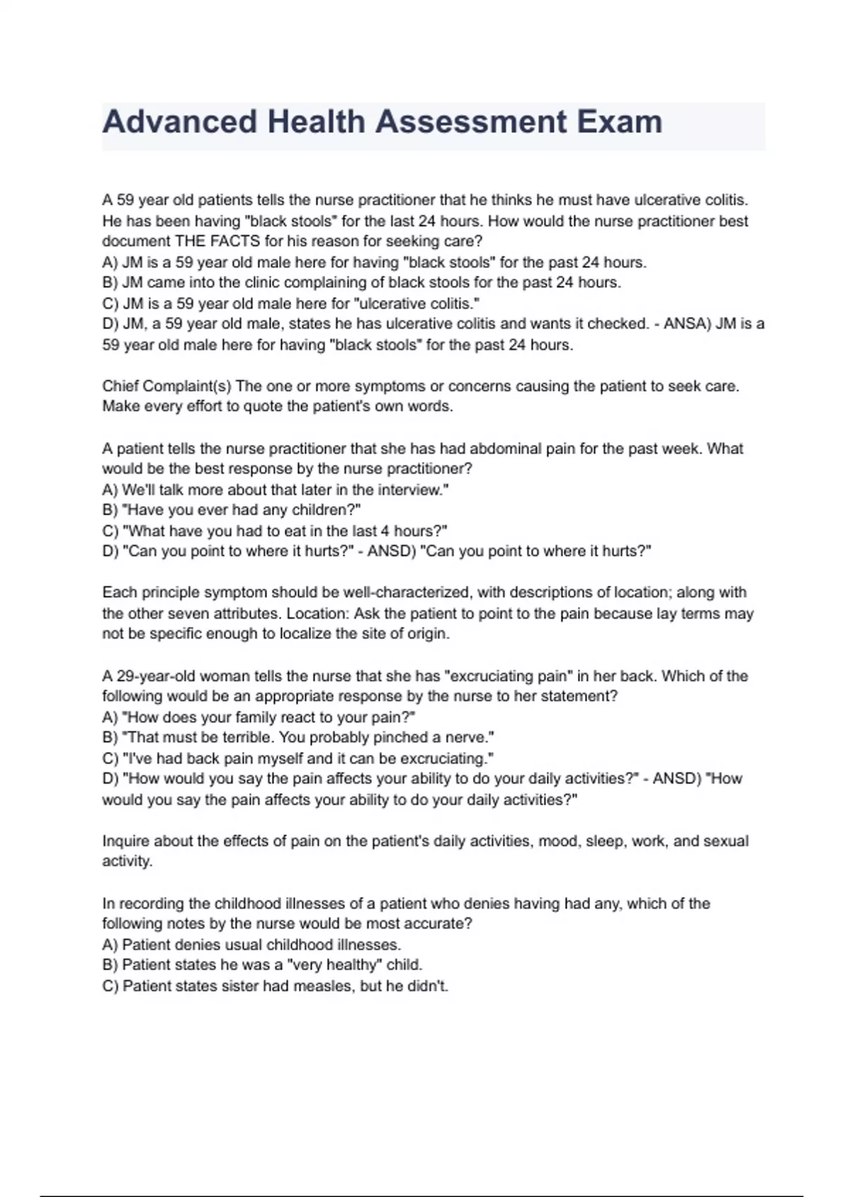 Advanced Health Assessment Exam 2023/2024