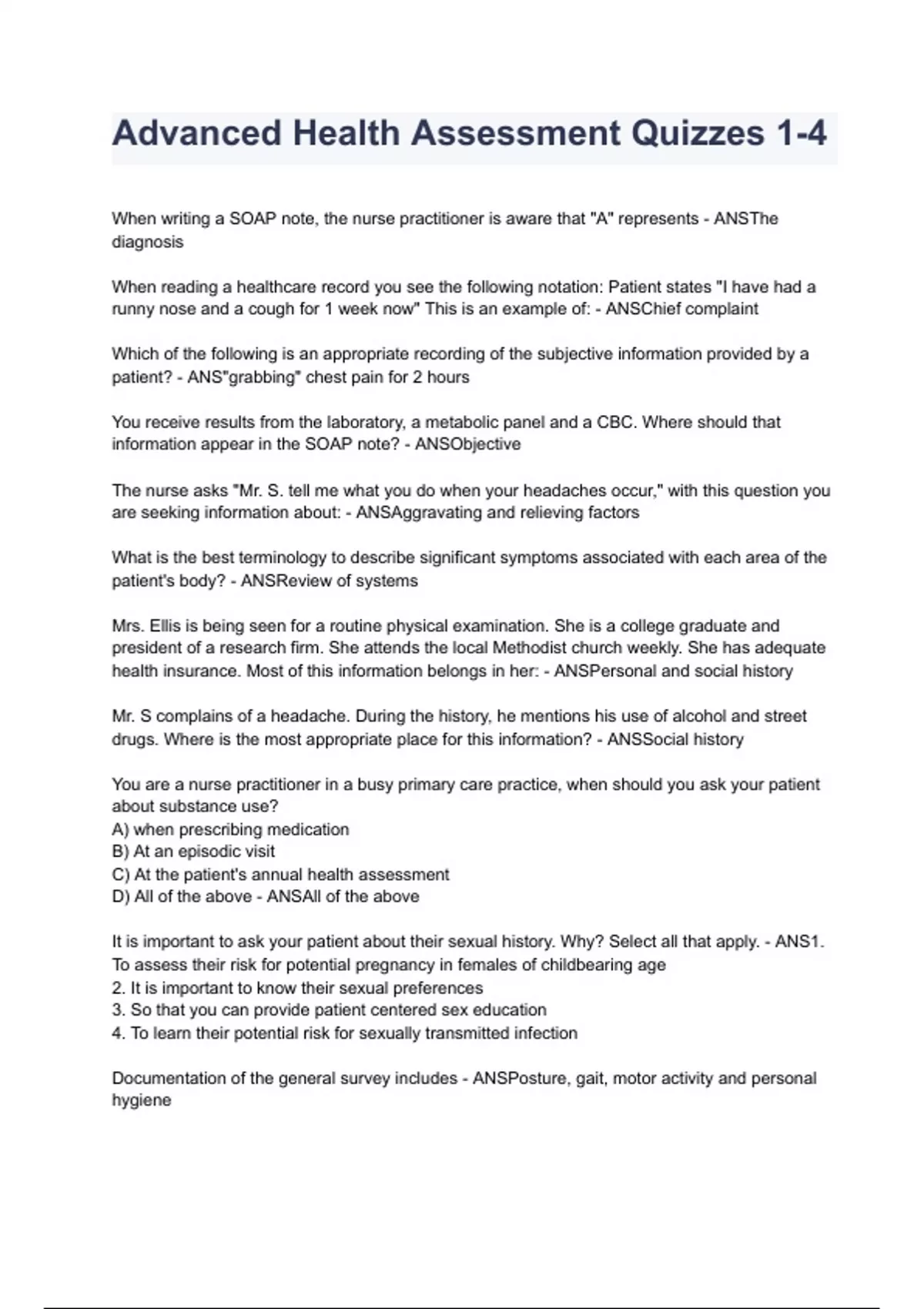 Advanced Health Assessment Quizzes 1-4 2023/2024