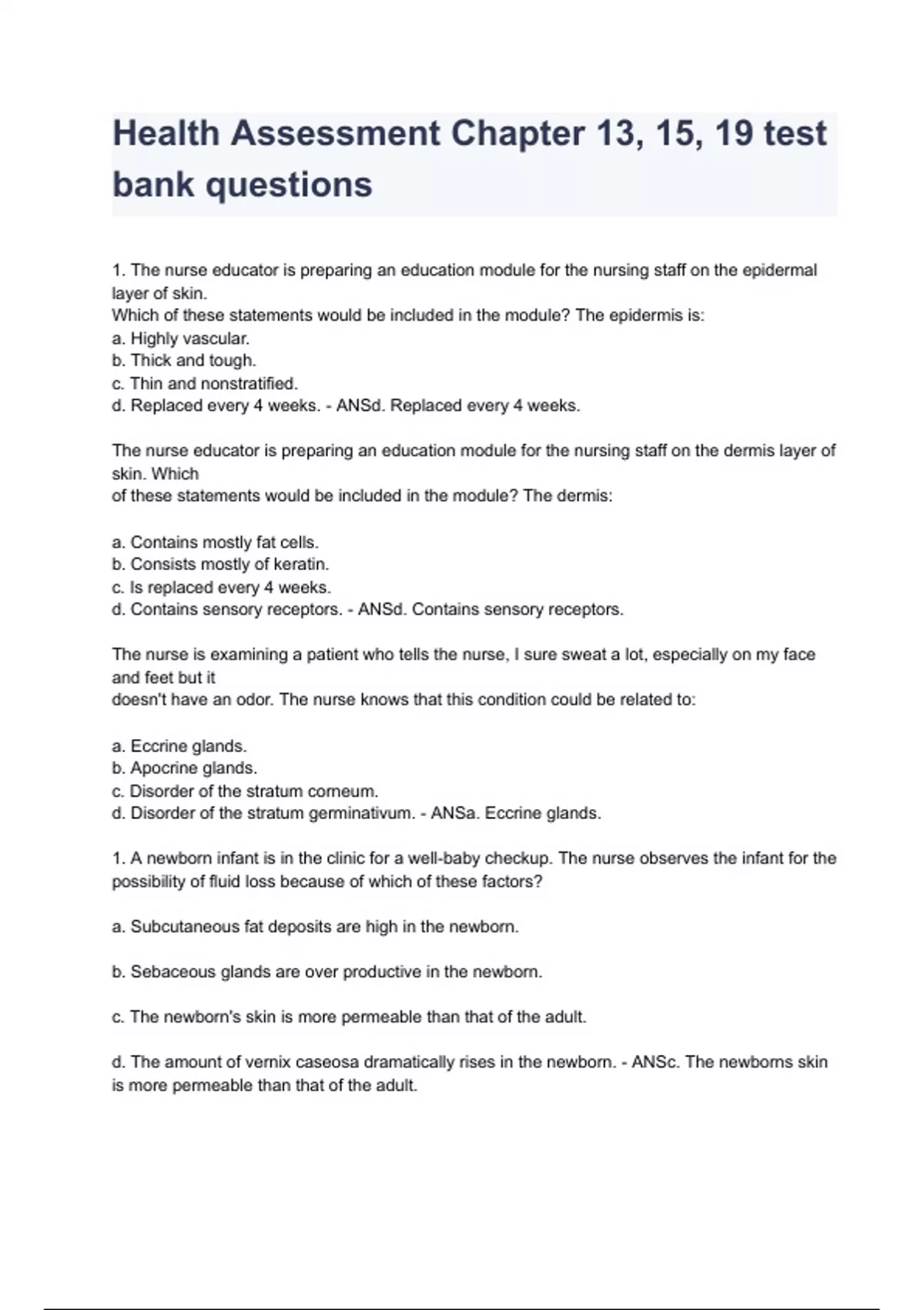 1. The nurse educator is preparing an education module for the nursing staff on the epidermal
