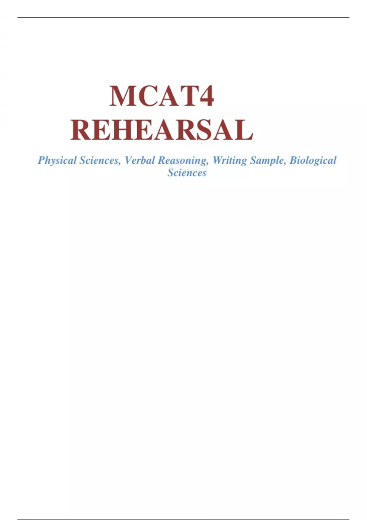 MCAT4 REHEARSAL Physical Sciences, Verbal Reasoning, Writing Sample, Biological Sciences