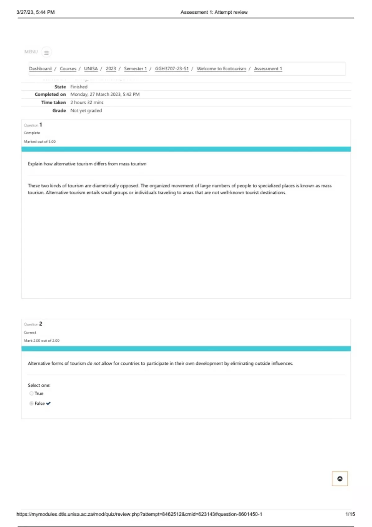 Dashboard / Courses / UNISA / 2023 / Semester 1 / GGH3707-23-S1 / Welcome to Ecotourism / Assessment 1