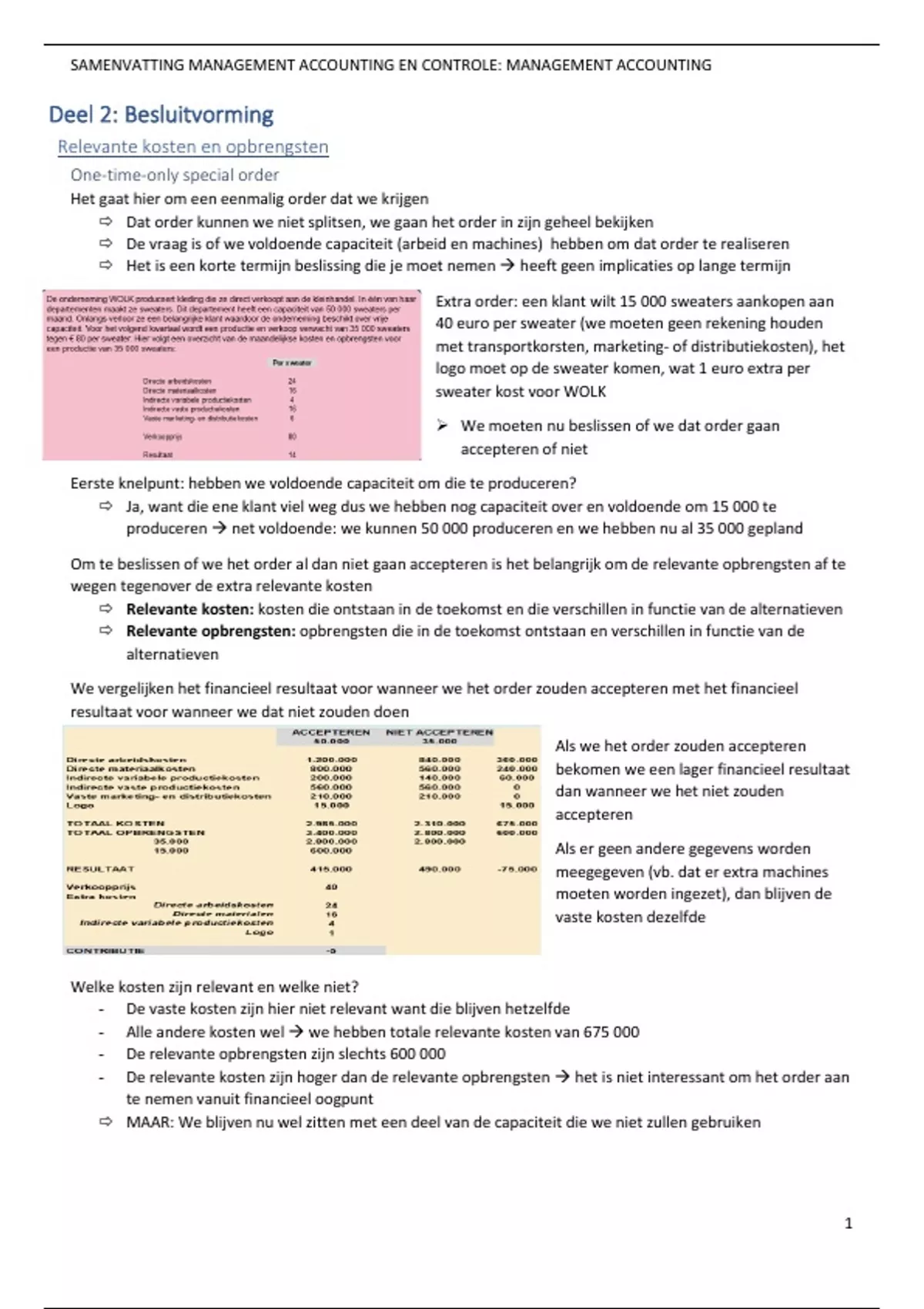 SAMENVATTING MANAGEMENT ACCOUNTING EN CONTROLE: MANAGEMENT ACCOUNTING