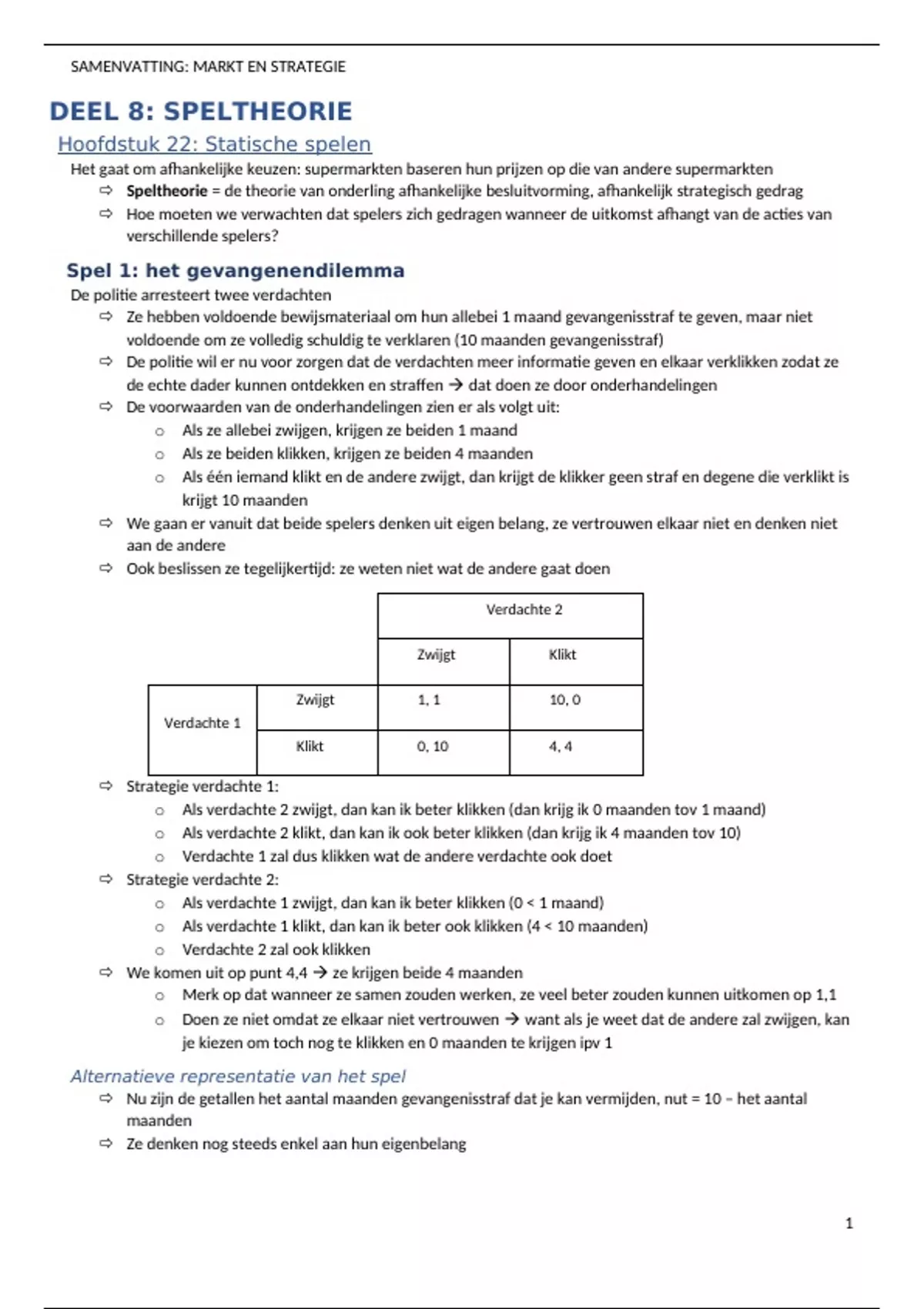 Samenvatting van het vak Markt en Strategie gebaseerd op de slides, notities van tijdens de les en de cursus.