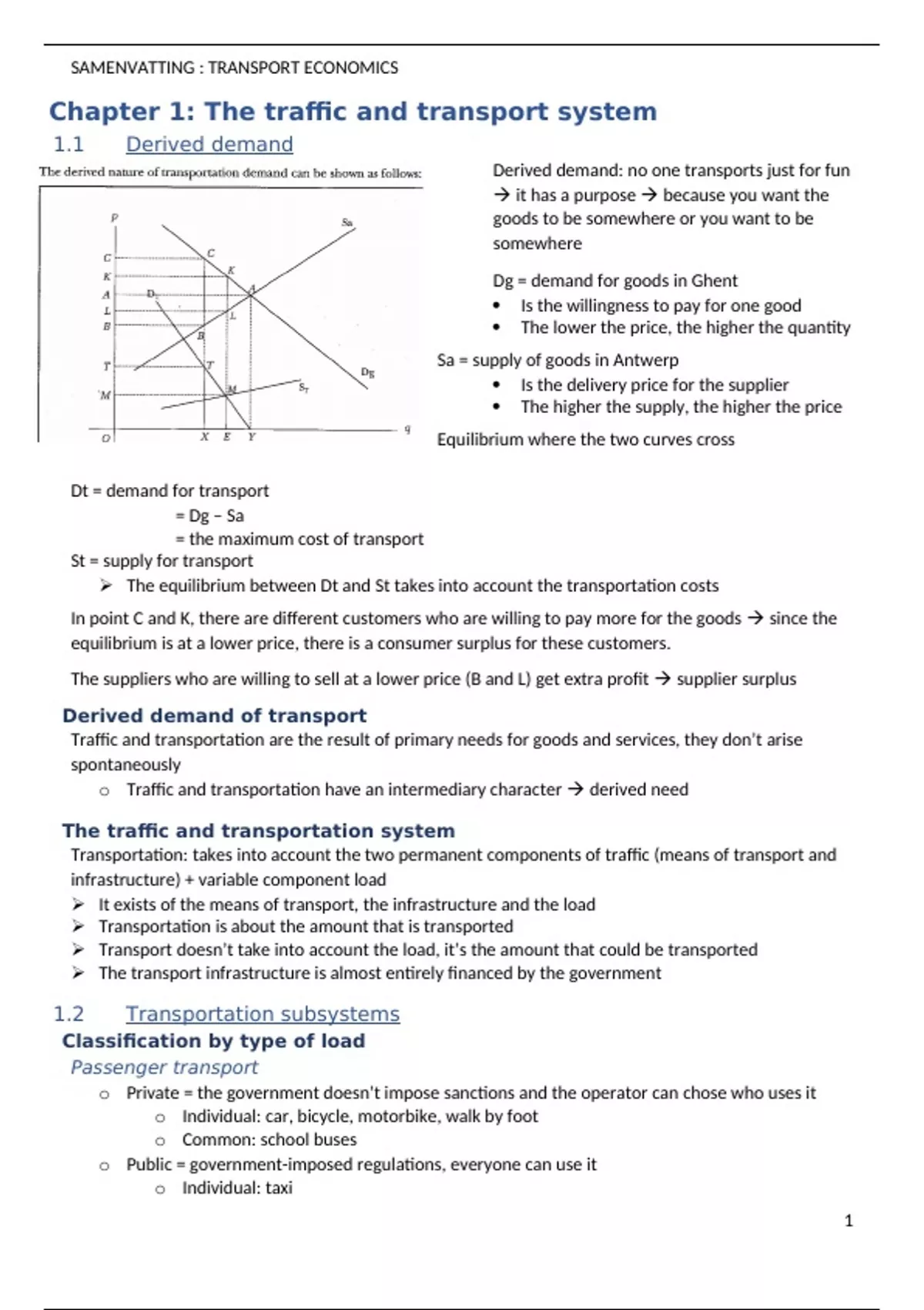 , SAMENVATTING : TRANSPORT ECONOMICS