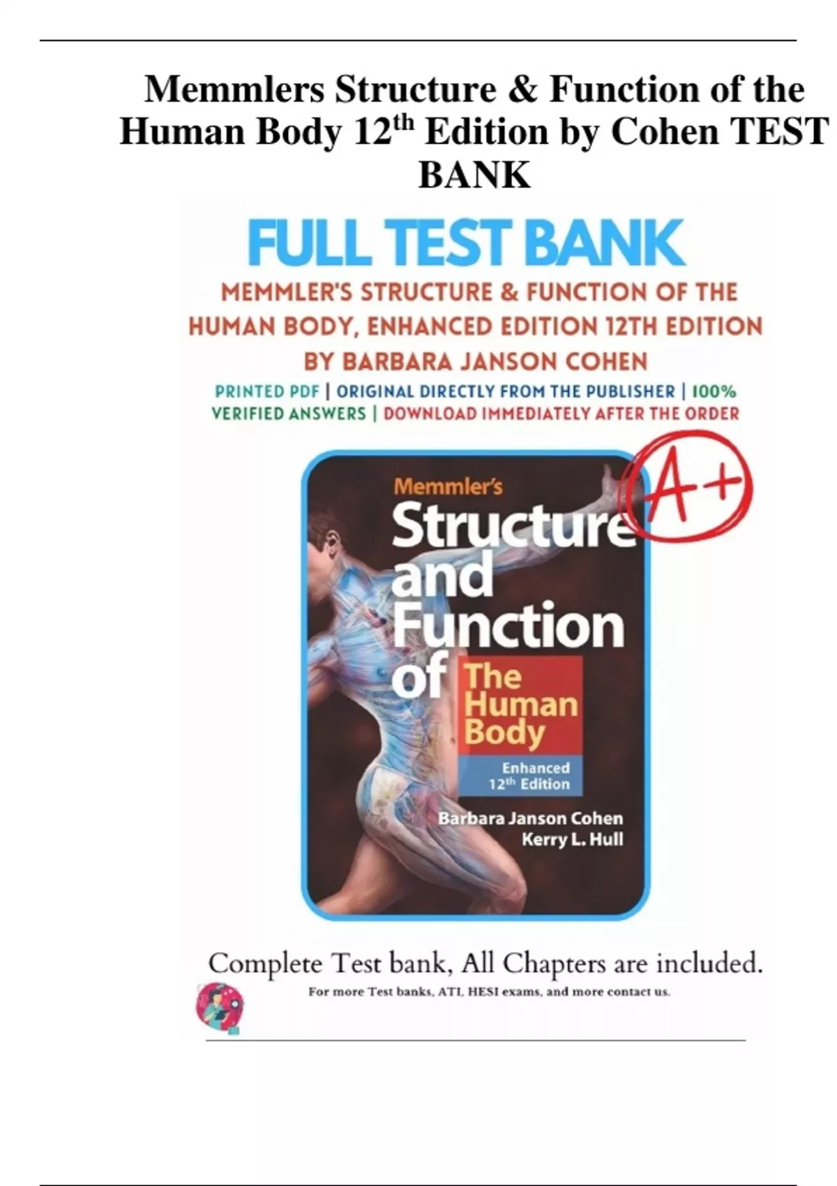 Memmlers Structure & Function of the Human Body 12th Ed by Cohen TEST BANK - (SCORED A+) Q&A LATEST UPDATE 2023