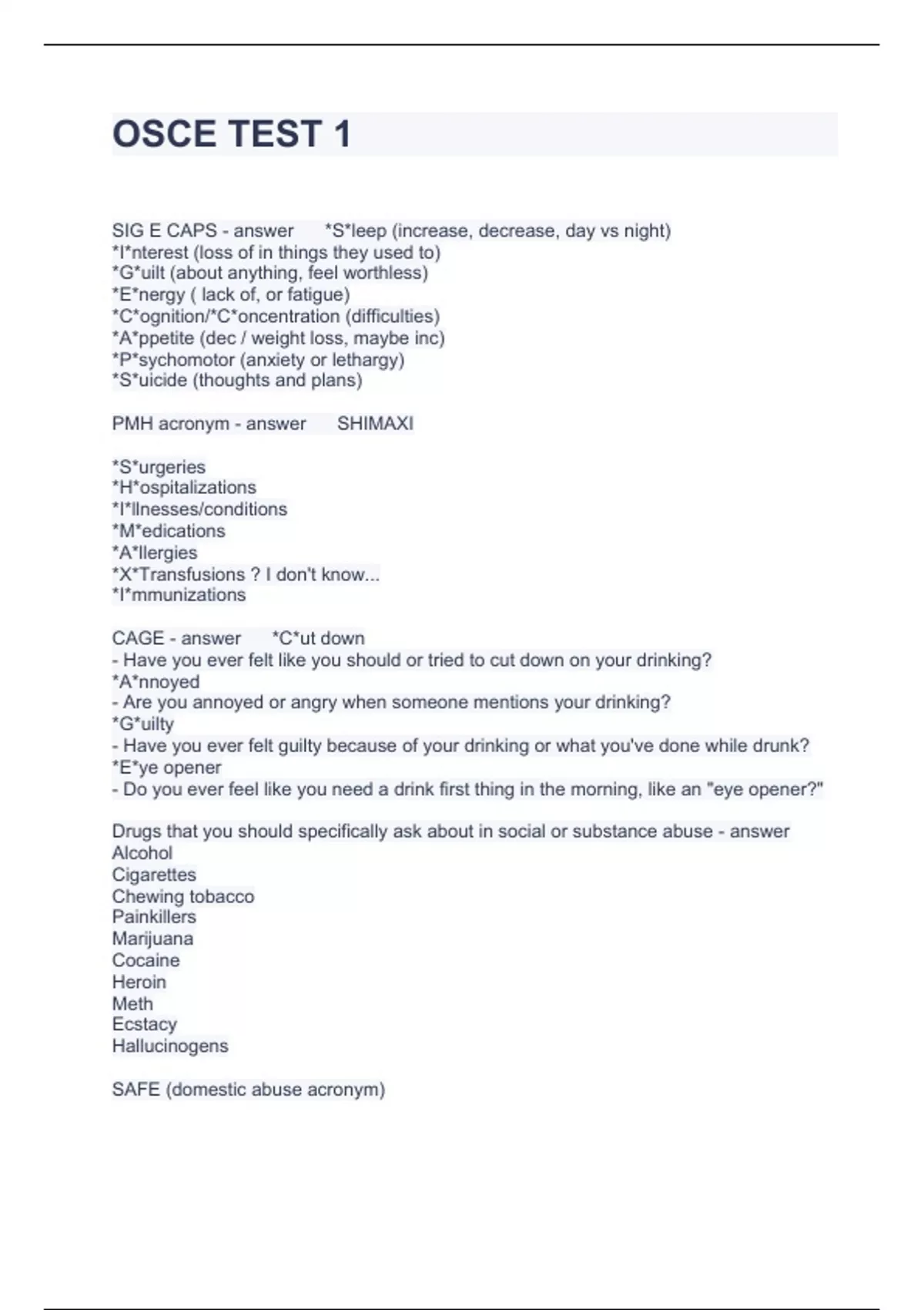 Exam of 4 pages for the course OSCE at OSCE (OSCE TEST 1)