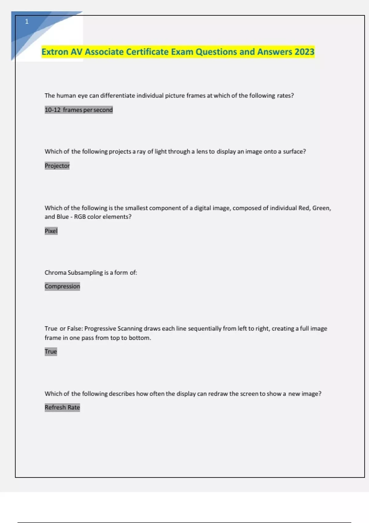 Extron AV Associate Certificate Exam Questions and Answers 2023