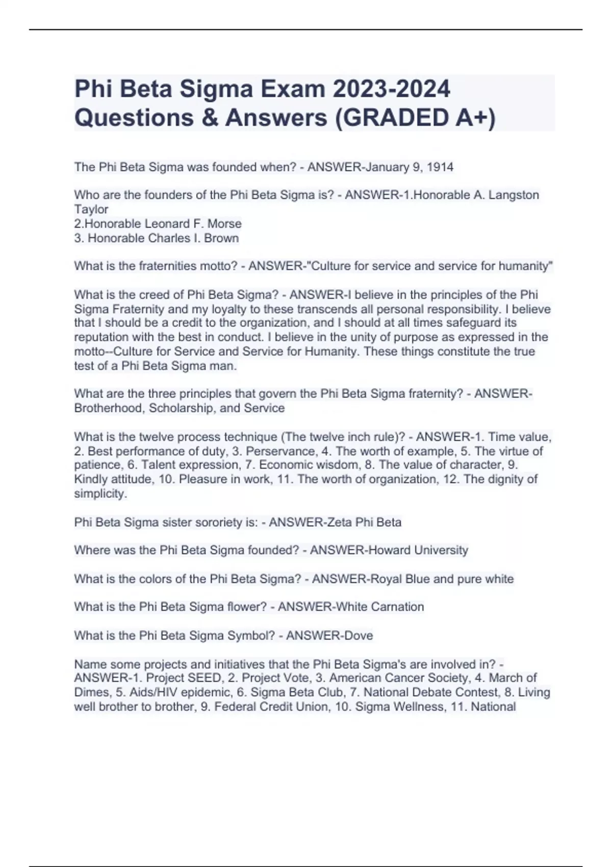 Phi Beta Sigma Exam Questions & Answers (GRADED A+)