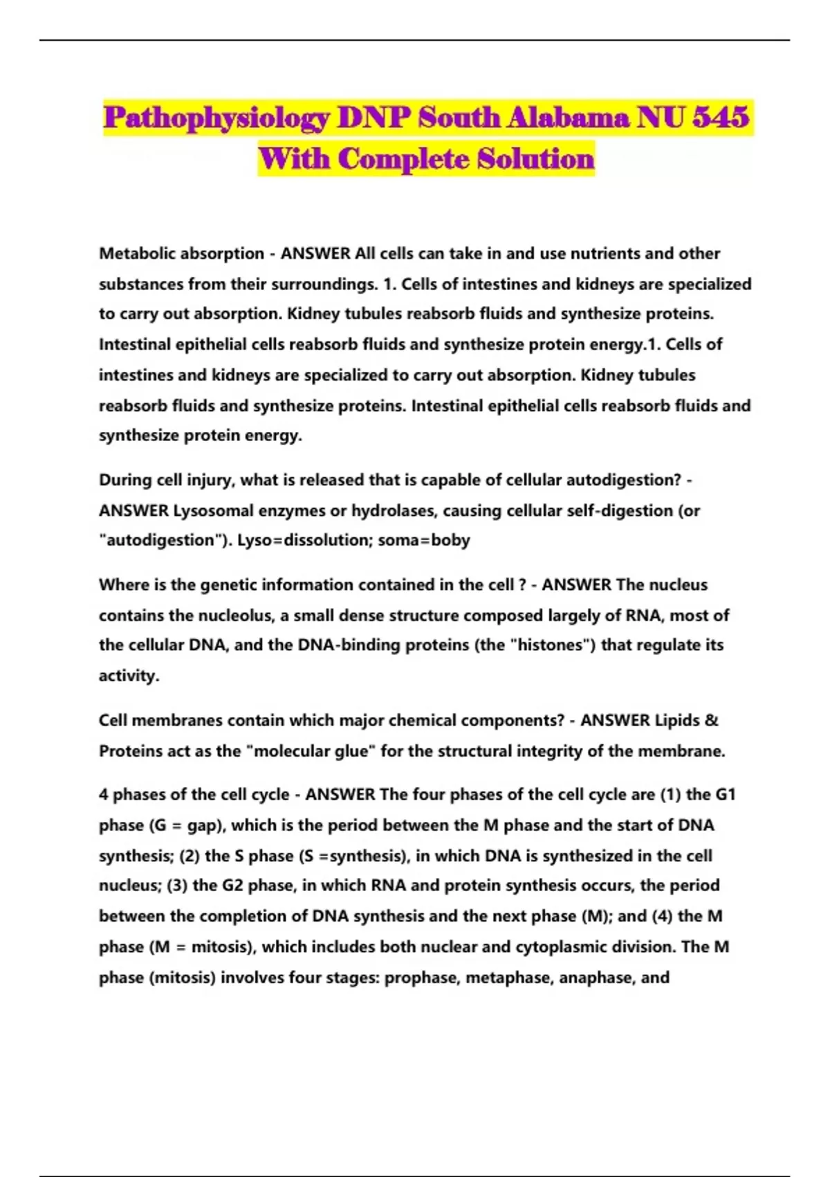 Pathophysiology DNP South Alabama NU 545 With Complete Solution...