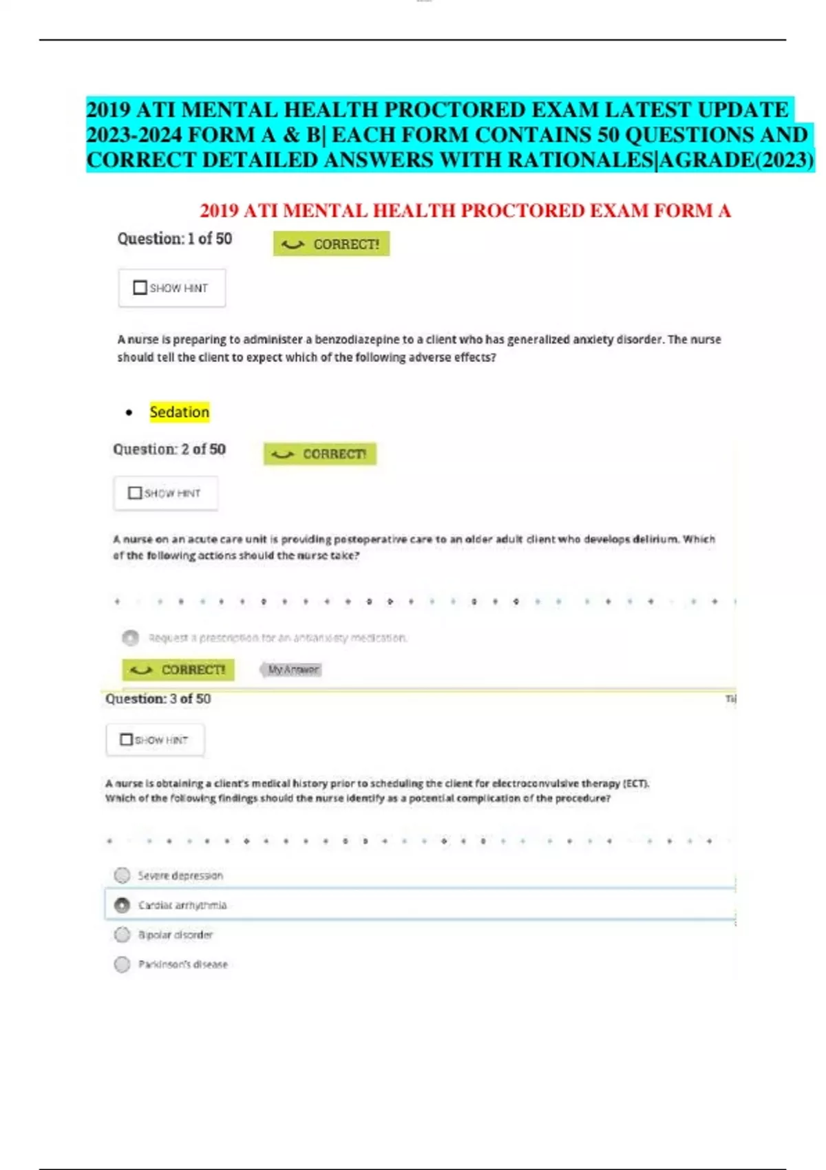 ATI RN MENTAL HEALTH PROCTORED ACTUAL EXAMS BUNDLE LATES 2024/2025/ RN ATI MENTAL HEALTH PROCTORED EXAMS (7 VERSIONS) REAL EXAM QUESTIONS AND CORRECT ANSWERS GRADED A