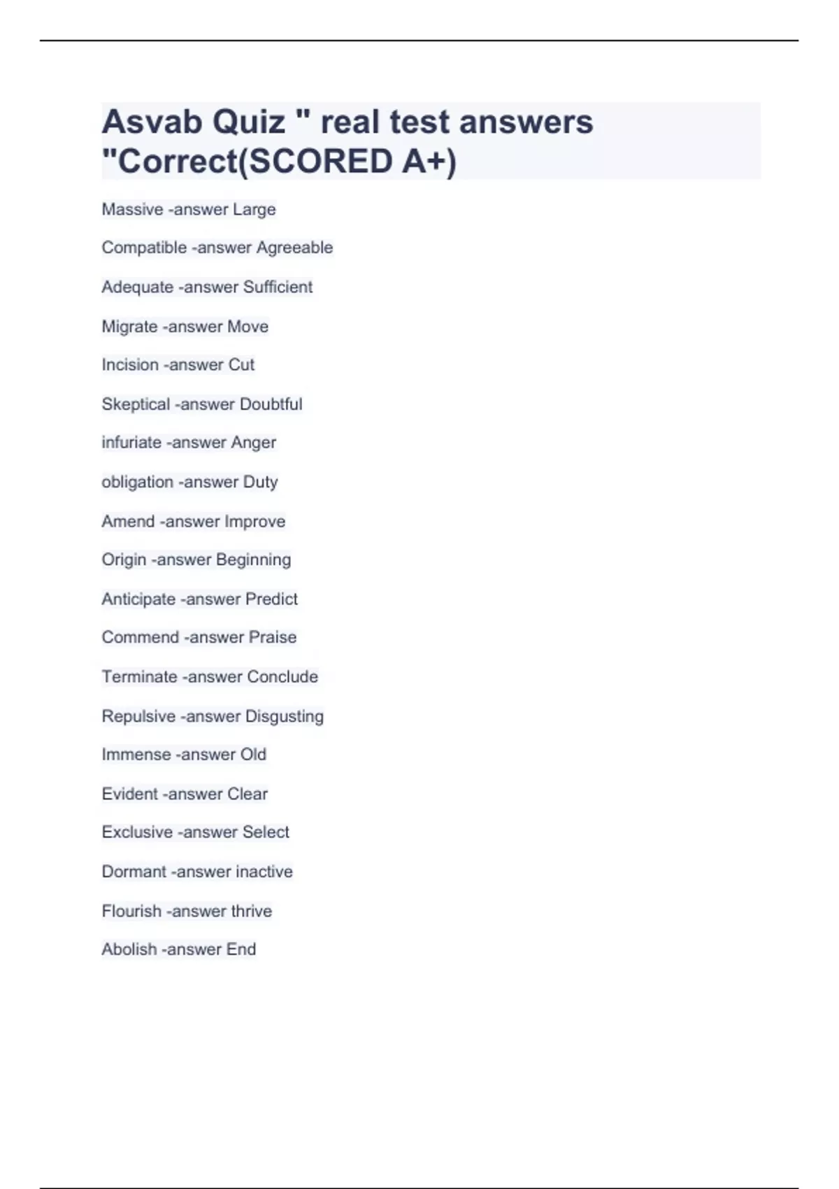 Asvab Quiz " real test answers "Correct(SCORED A+)