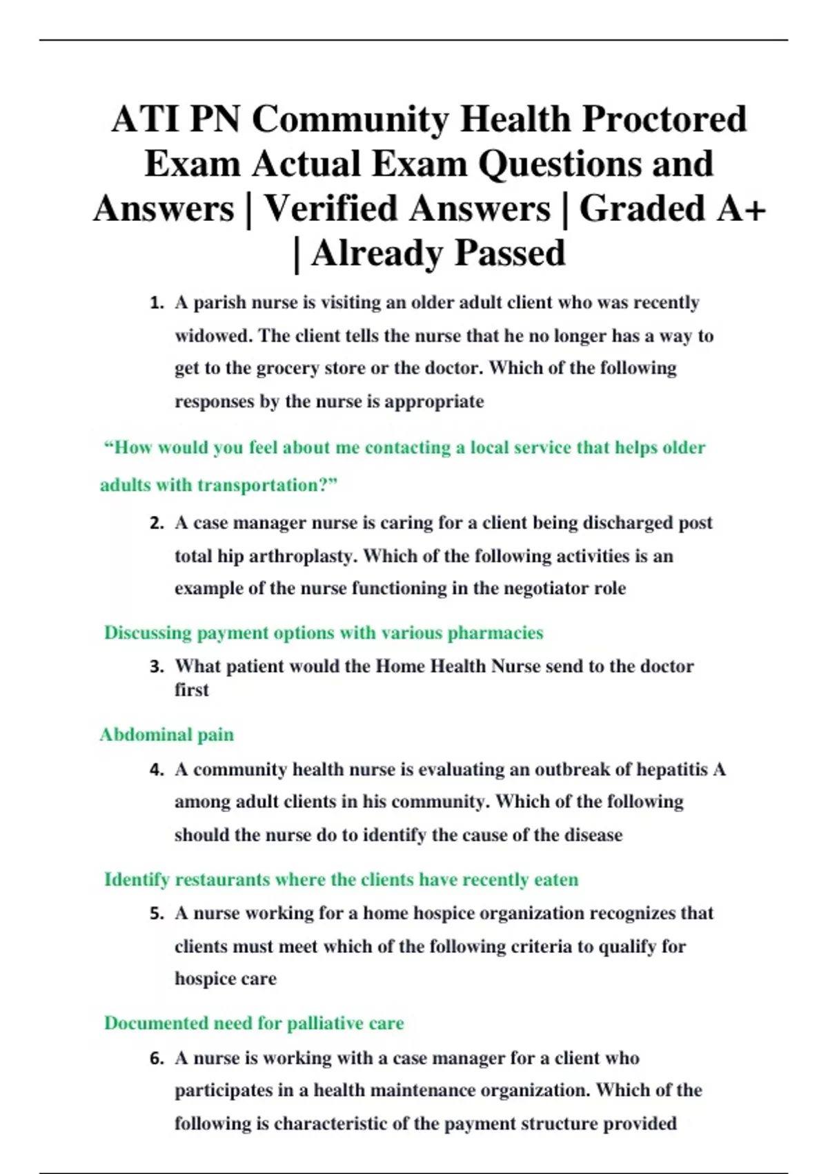 ATI PN Community Health Proctored Exam Actual Exam Questions and Answers | Verified Answers | Graded A+ | Already Passed