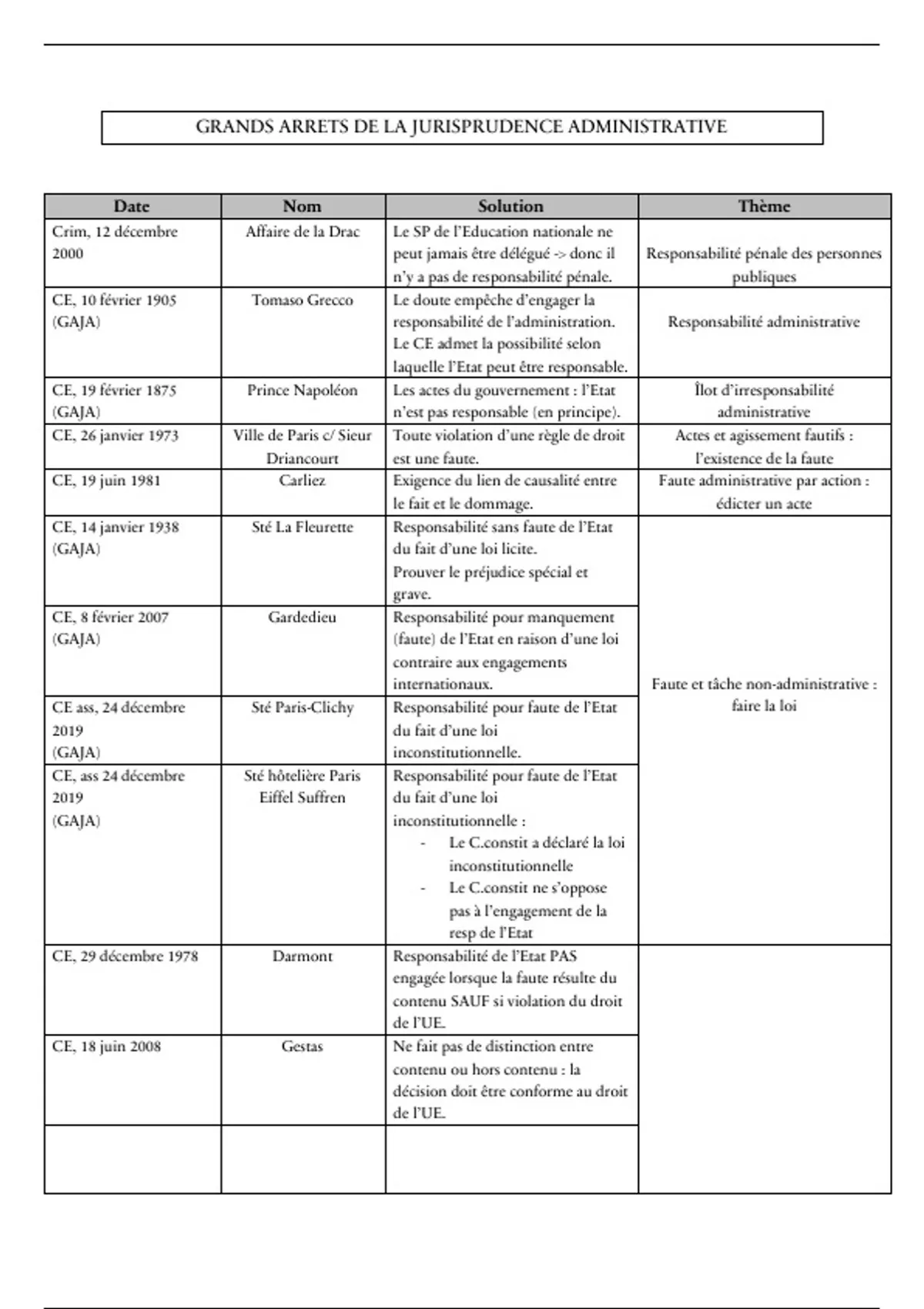(GAJA) responsabilité de l’administration. Responsabilité administrative