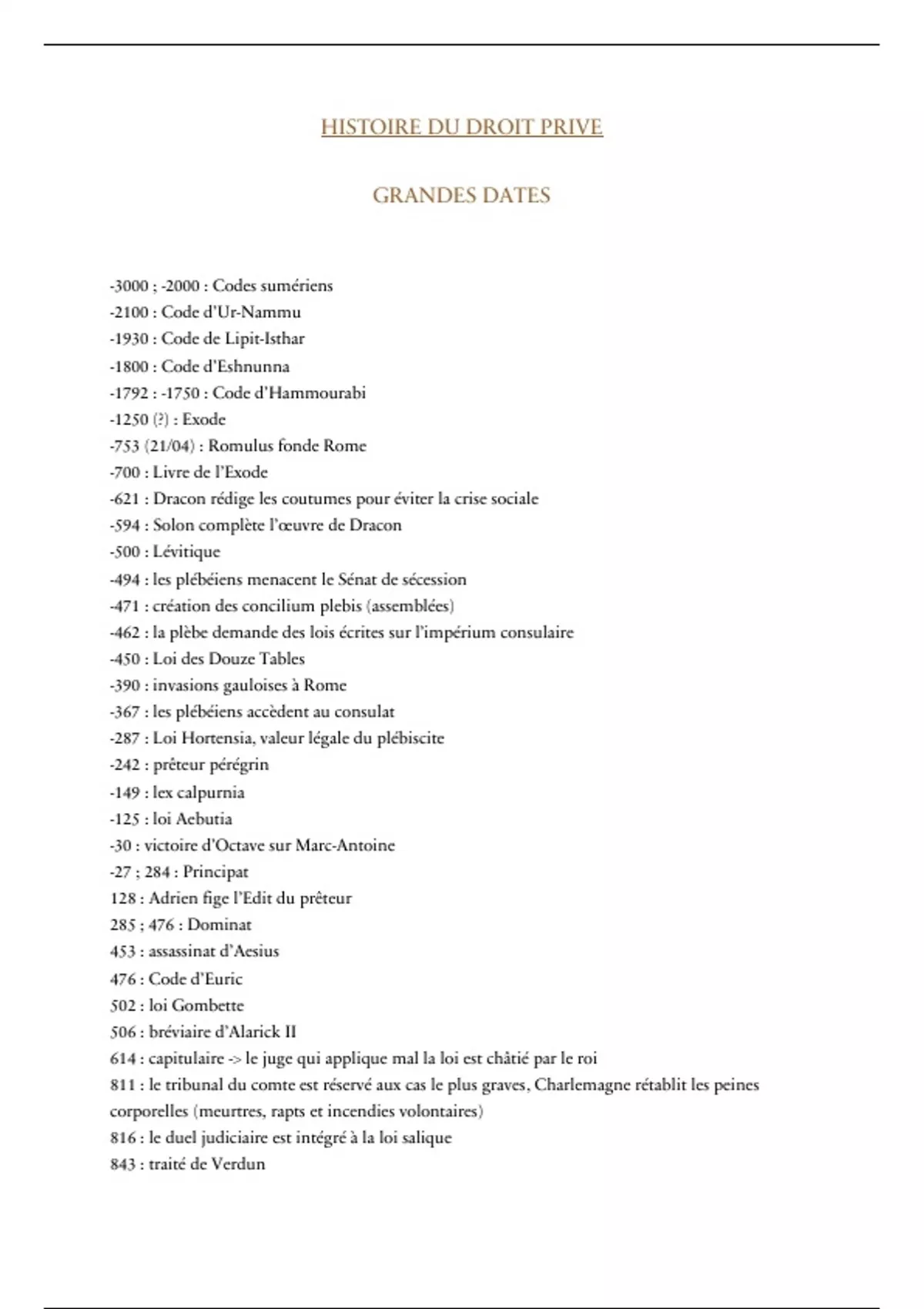 Résumé Dates histoire du droit privé