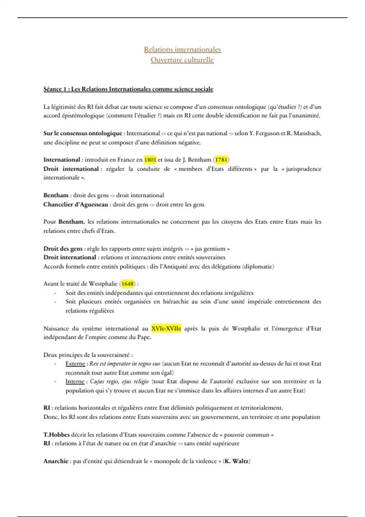 RI : relations horizontales et régulières entre Etat délimités politiquement et territorialement.