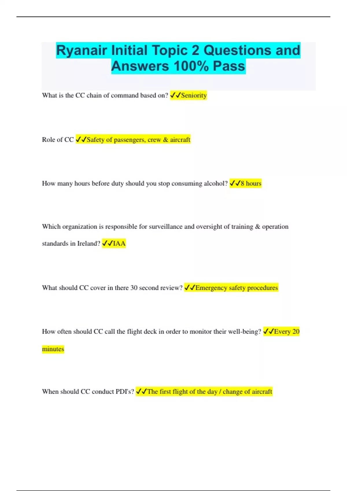 Ryanair Initial Topic 2 Questions and Answers 100% Pass