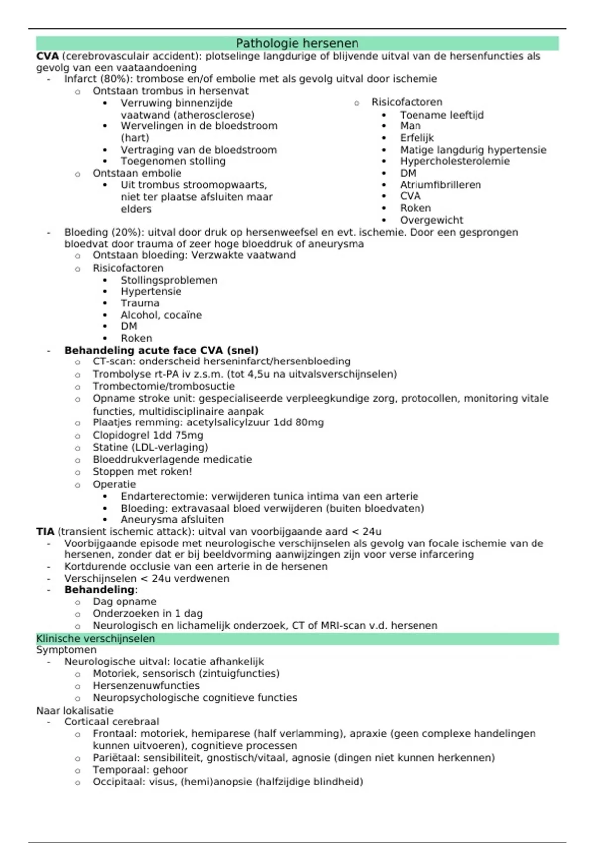 CVA (cerebrovasculair accident): plotselinge langdurige of blijvende uitval van de hersenfuncties als
