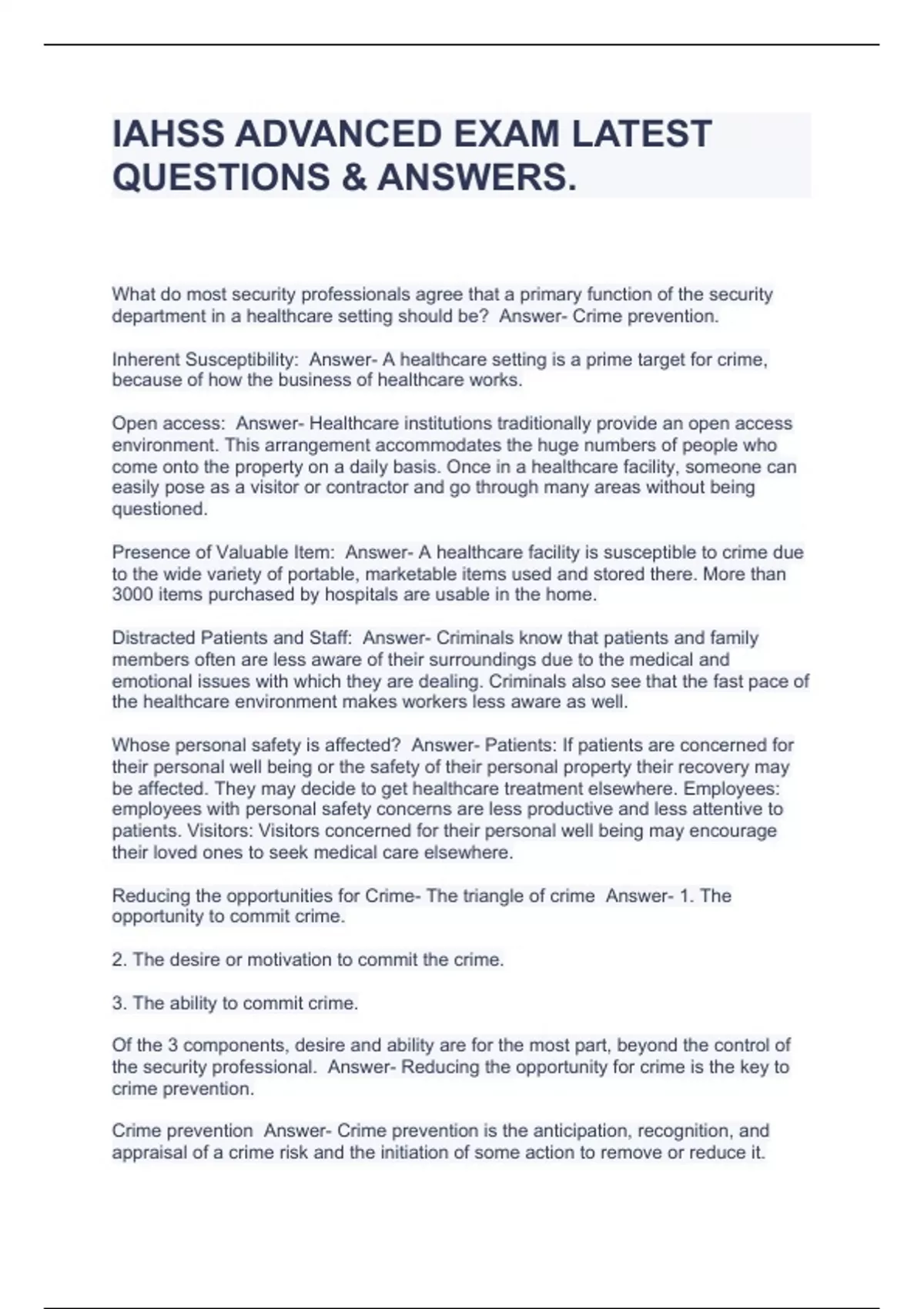 IAHSS ADVANCED EXAM LATEST QUESTIONS & ANSWERS.